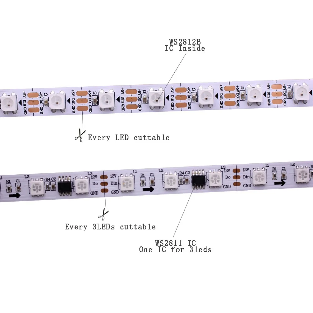 Умная светодиодная Пиксельная лента WS2811S WS2812B, 12345 м, 3060144 светодиодовметр, чернаябелая печатная плата, микросхема WS2812, IP30IP65IP67 DC5V 12V