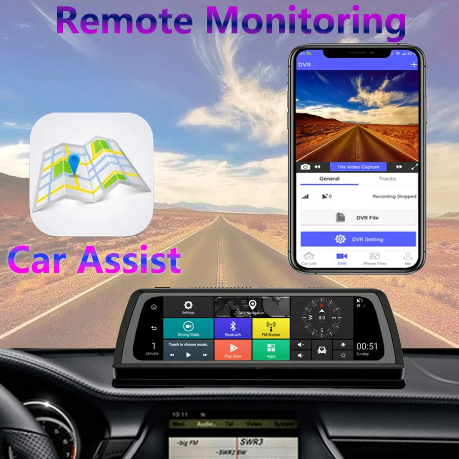 Удаленное приложение для помощи автомобилю, просмотрите обзор зеркального видеорегистратора по смартфону. Продолжайте заниматься серфингом в Интернете и удаленно Отслеживайте путь вождения автомобиля. Загрузите важные видео и один ключ, чтобы поделиться красотой вождения автомобиля.