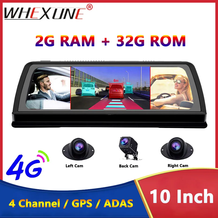 4-канальный объектив камеры 10 дюймов Android Auto FHD 1080P GPS-навигатор для автомобилей DVR 4G зеркало заднего вида ADAS WIFI привод видео рекордер Videcam