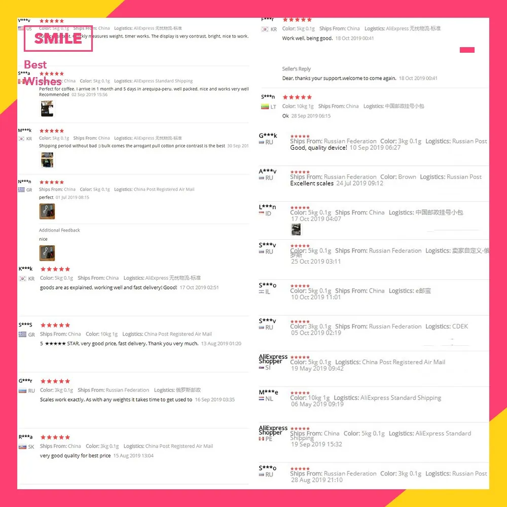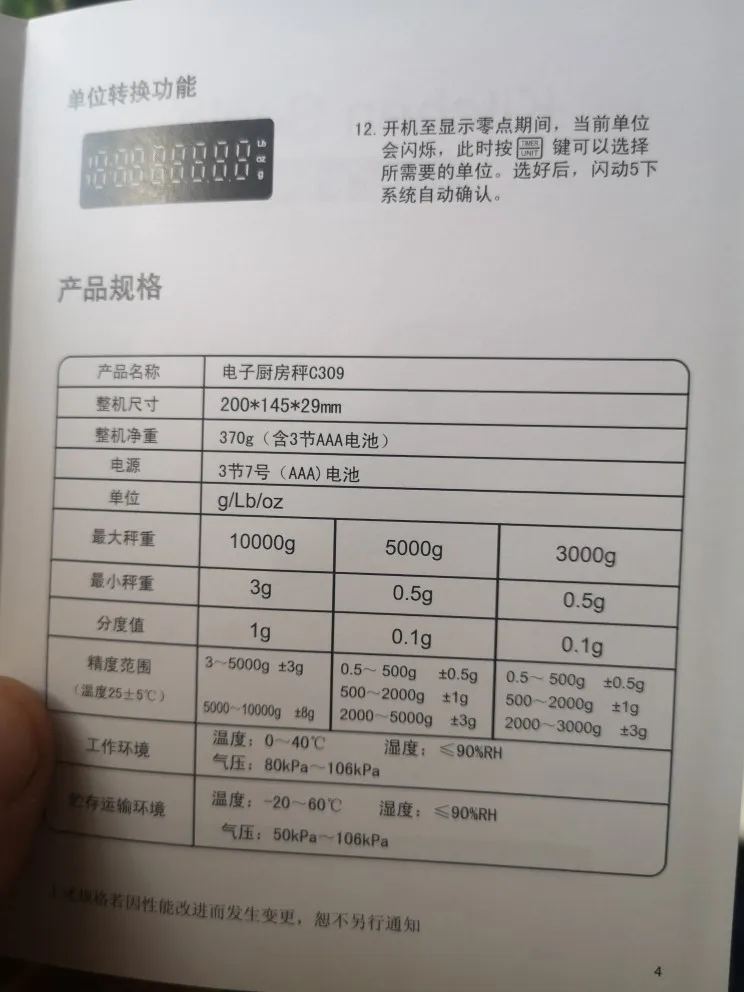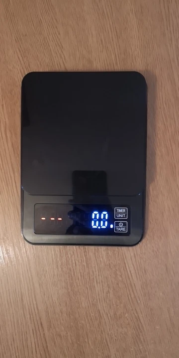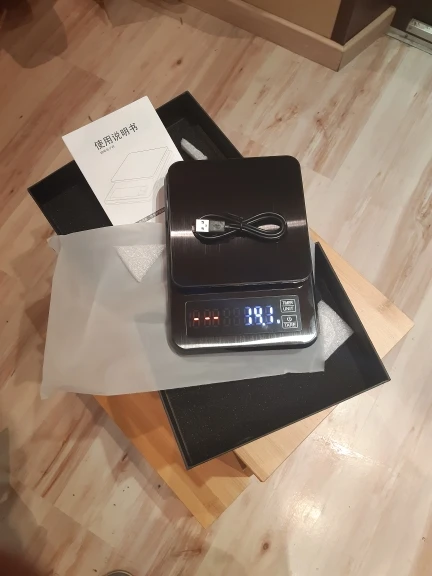 Работой продовца доволен, в почтовое отделение в Беларусь прибыло за 38 дней. Весы за свою цену на 10 из 10. Плюсы: 1. интуитивно понятное (для меня) управление всего 2мя кнопками, 2. наличие таймера (срабатывает только от нажатия соответствующей кнопки ), 3. точность 0,1 удобно применять как для точного взвешивания при приготовлении кофе так и для обычного применения на кухне за счет макс вес до 5 кг (естественно чем больше нагрузите тем больше погрешность) , фото таблицы погрешностей прилагается, 4. Работают от 3х ААА батареек, но есть возможность и от сети или пауэрбэнка если вдруг приспичит а батареек нет, кабель с микро usb на usb идет в комплекте 5. Цена (брал за 18,36$). Из минусов: достаточно хрупкий по ощущениям пластик, глянцевый притягивает пыль и даже немного скользкий, возможно кому то не зайдет управление этими 2мя кнопками.