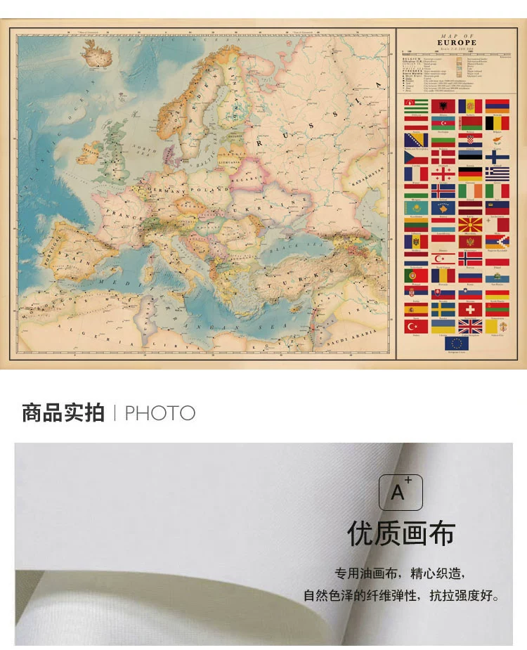 Europe Map Poster Size Wall Decoration Large Map of The Europe 80x53 Waterproof canvas map