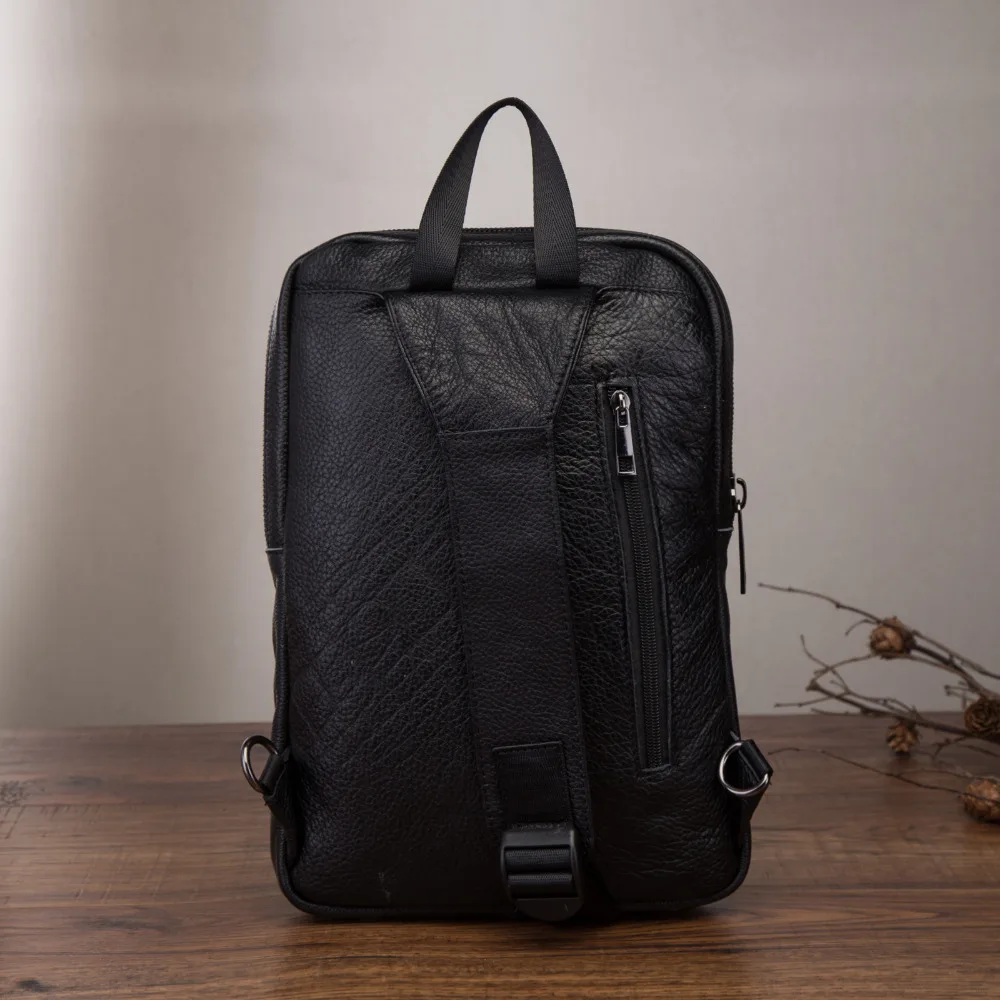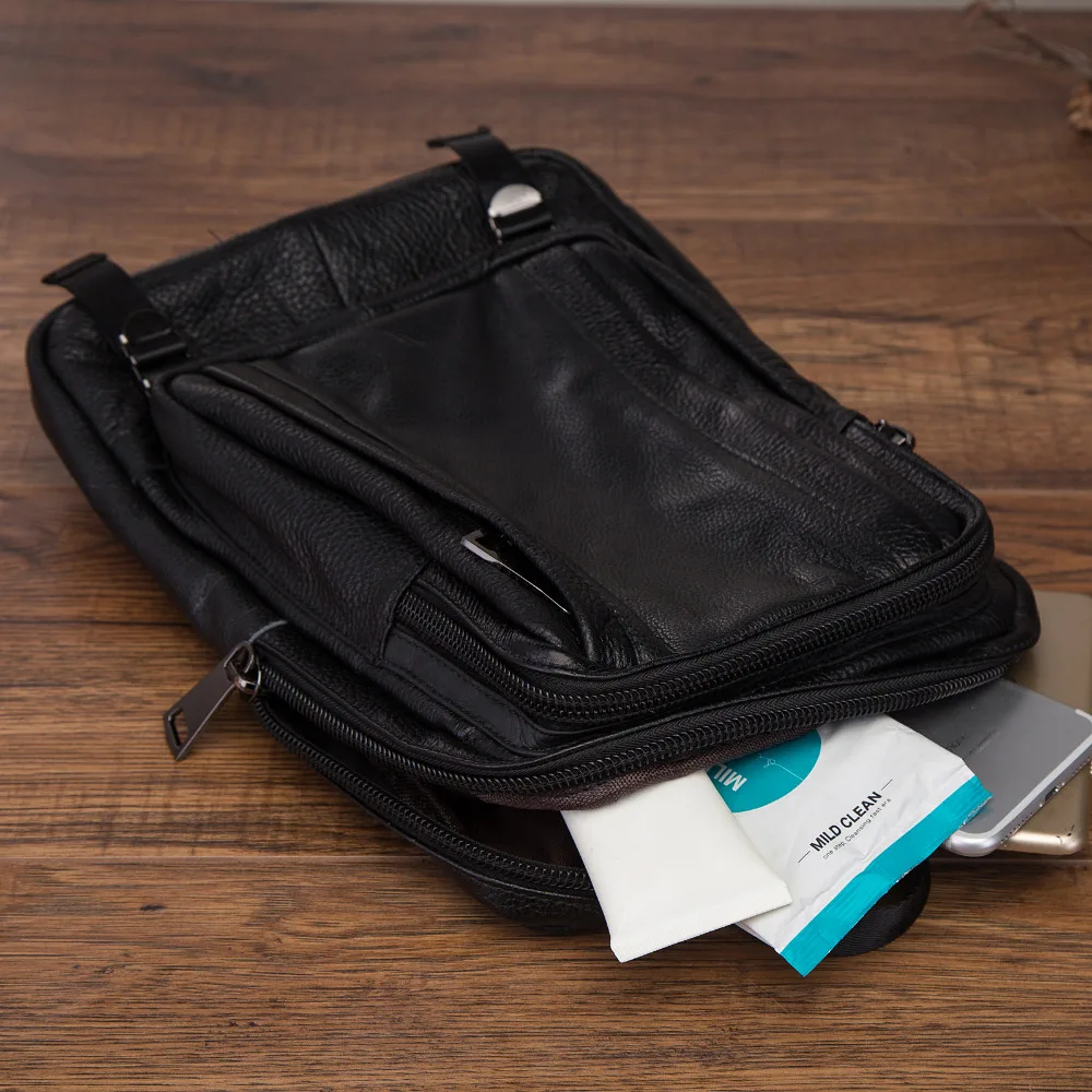 Лидер продаж, Мужская оригинальная кожаная повседневная модная нагрудная Сумка-слинг 10 дюймов, Дизайнерская Дорожная сумка через плечо для планшета Черного Цвета 3080-3