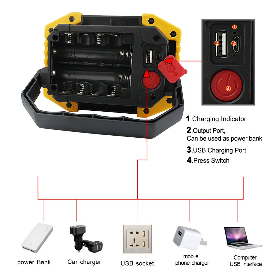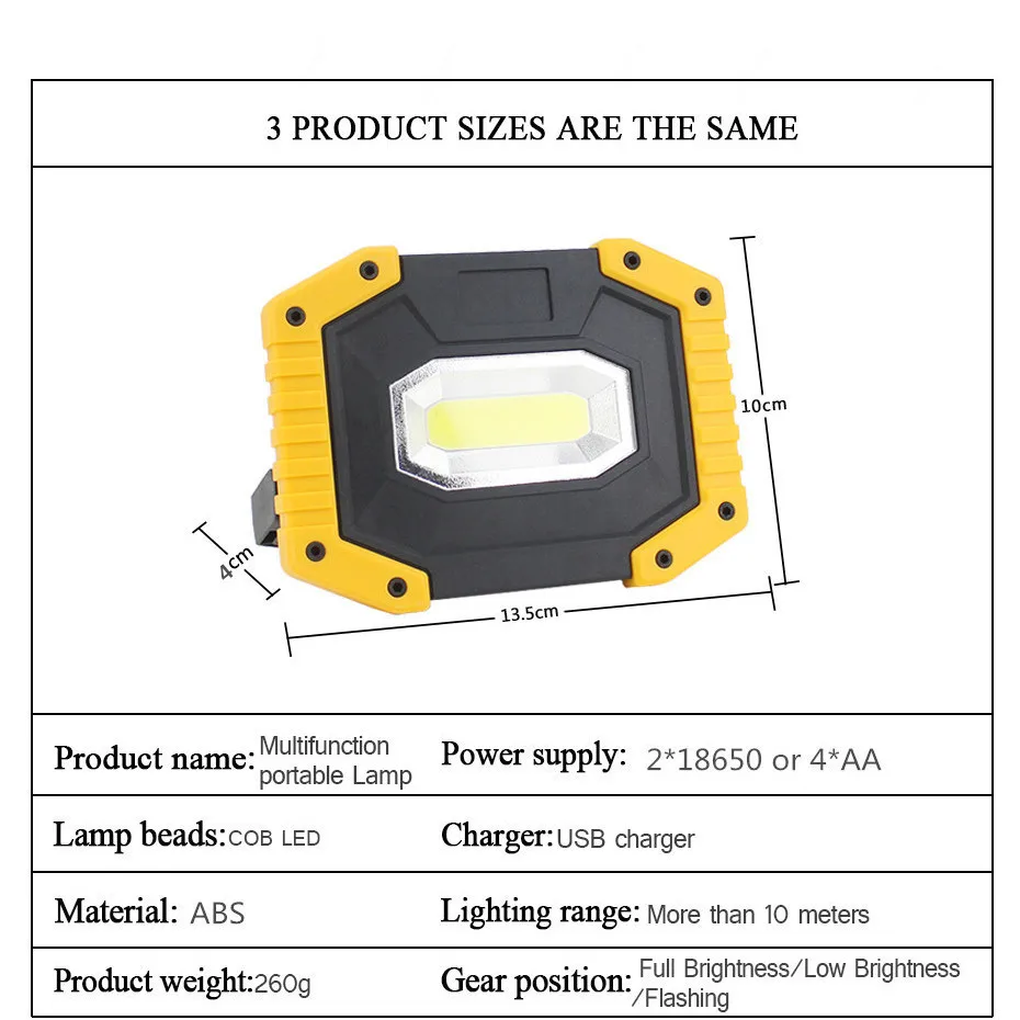 Портативный Точечный светильник 20 Вт Перезаряжаемые светодиодный рабочий светильник на открытом воздухе COB Кемпинг Светильник для Пеший Туризм рабочий Авто ремонтная мастерская