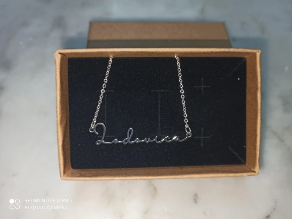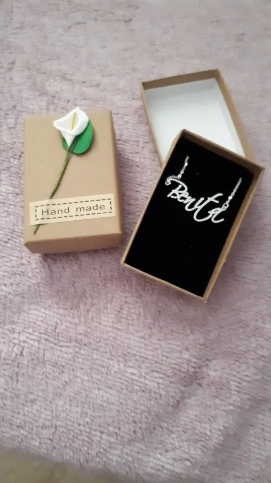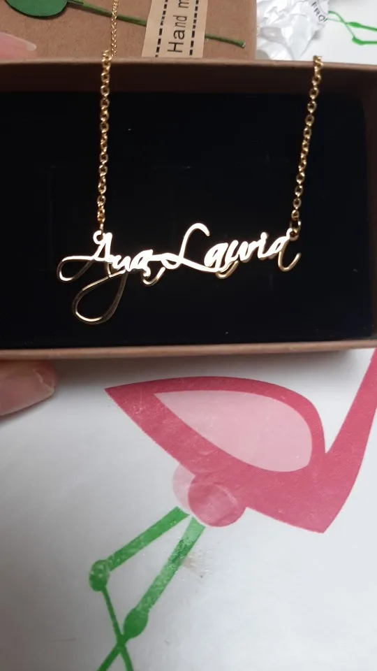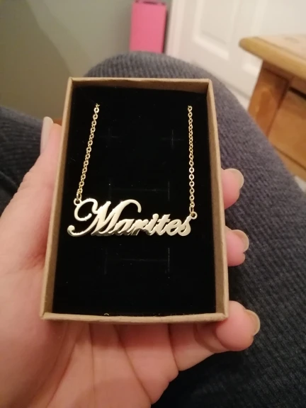 Ожерелье, оно точно соответствует размеру, который я заказал, соответствует выбранному вами размеру. Выглядит очень красиво, и имя, которое я запросил, верное. Доставка занимает около 10 дней. Очень доволен им сейчас я просто надеюсь, что он не уродится с использованием, хотя Я постараюсь позаботиться о нем.