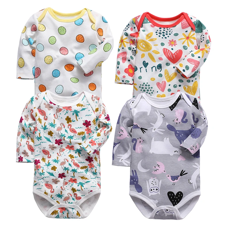 Боди для новорожденных, для девочек и мальчиков, 100% хлопок, с мультяшным принтом, с длинными рукавами, 1 шт., для 0-24 месяцев