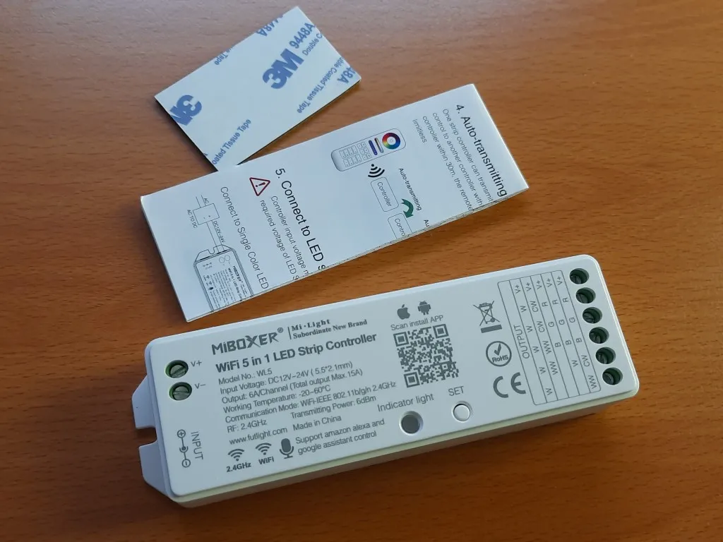Funciona muy bien. Se controla a través de una aplicación con el teléfono móvil por WIFI (sólo 2,4 Ghz, no compatible con 5 Ghz), con lo cual puede estar más escondido que los controladores que se manejan con mando a distancia. La única pega que le he encontrado es que las pegatinas RGBW de las conexiones no coinciden con esos colores. El verde se tiene que conectar a la R y el rojo a la G. Otra pequeña molestia es que he tenido que conectar el teléfono móvil a la red WIFI de 2.4 Ghz en vez de a la de 5 Ghz para poder controlar la luz... pero para recibir Whatsapps tampoco necesito 600 Mb/s. Muy contento con la compra. El envío fue bastante rápido a España.