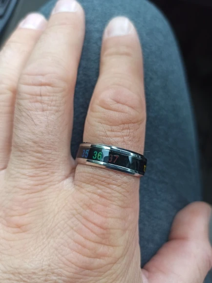 Выглядит хорошо и температуру показывает. Размеры подбирать не просто. У меня лапа большая 11 размер сел хорошо на мизинец. На милинце я ношу 20,5-21,0 По поводу температуры, за точность не поручусь, но и при условии, что мы доверяем показаниям, надо понимать, что это не температура тела, а температура кольца, которая складывается из температуры внутренней поверхности кольца (от нагрева пальцем) и температуры внешней поверхности кольца (нагревается/охлаждается воздухом/карманом и т.д.)