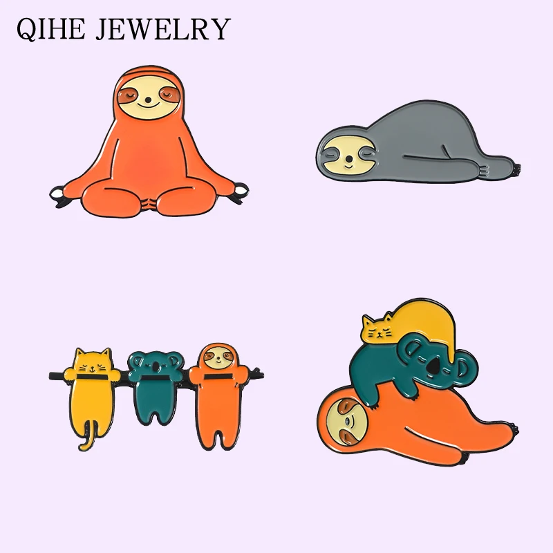 Забавные Животные Ленивец серия брошь Милая блестящая джинсовая эмаль значки на лацкан подарки для фанатов друзей коала аниме значки ювелирные изделия оптом