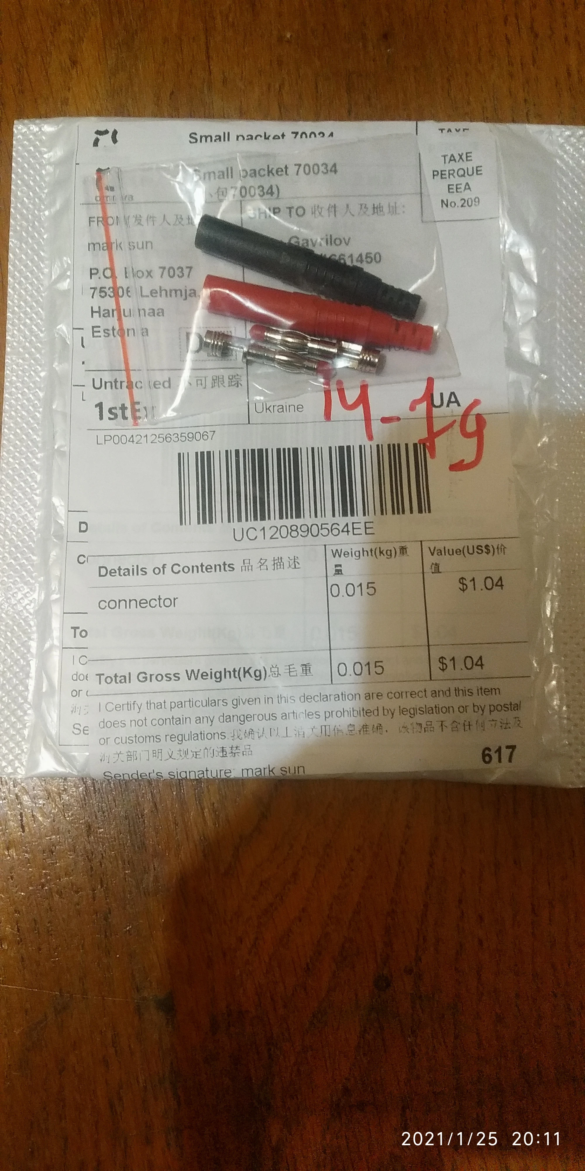Пришли в объединенной посылке, для самодельных щупов и кабелей пойдет. Спасибо.