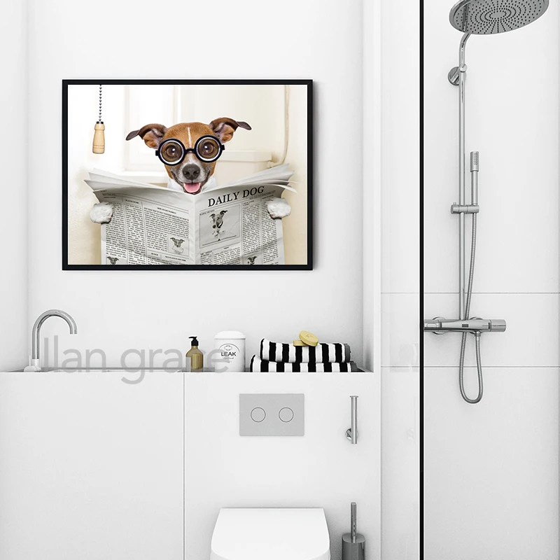 Настенный постер для чтения с собакой, газета, унитаз, рисунок на холсте, забавная собака, Настенная картина, украшение для дома, ванной комнаты, собаки, подарок для любимых