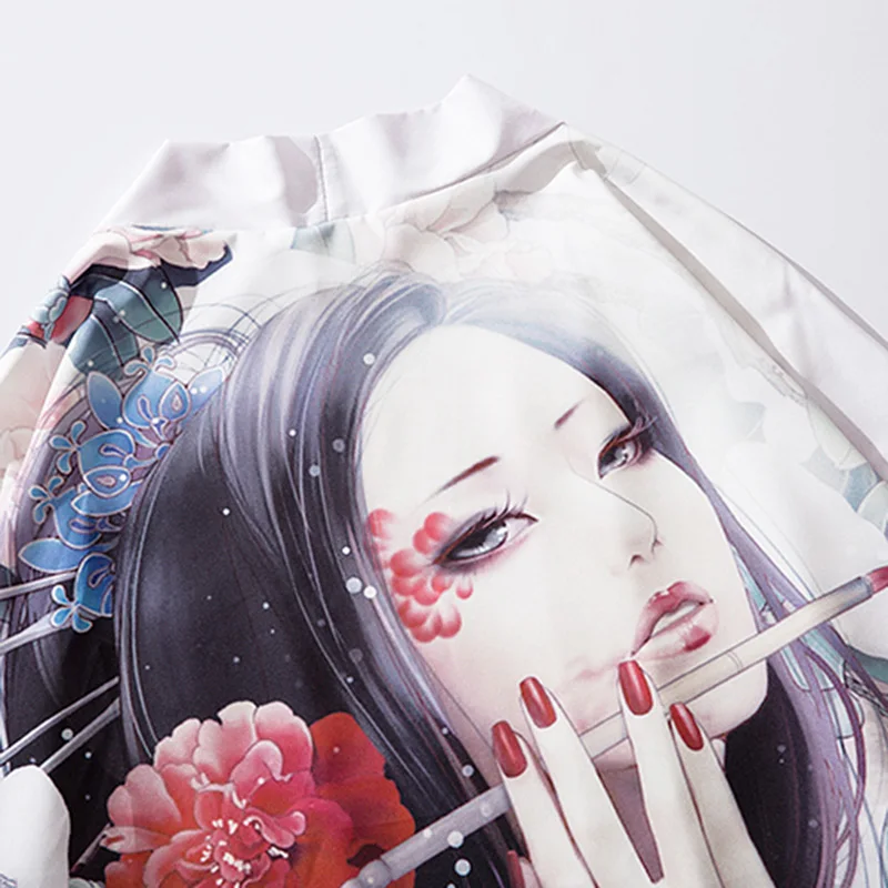 2021 Харадзюку кимоно куртка японский Ukiyoe цветочный Гейша тату хип-хоп Мужская Уличная куртка пальто летнее тонкое платье японский стиль