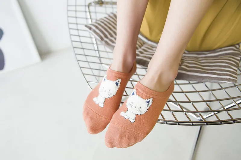Носки-невидимки женские цветные с животными, удобные милые хлопковы...