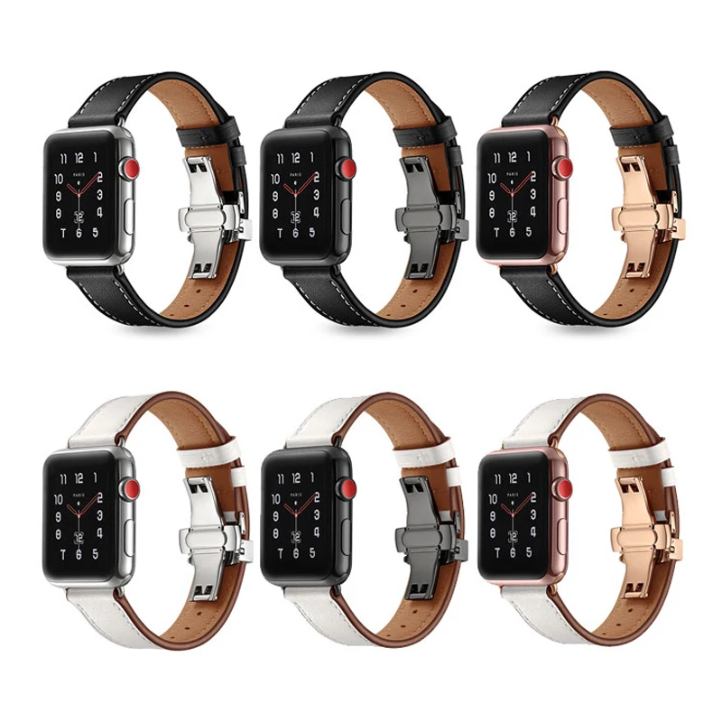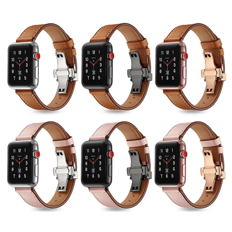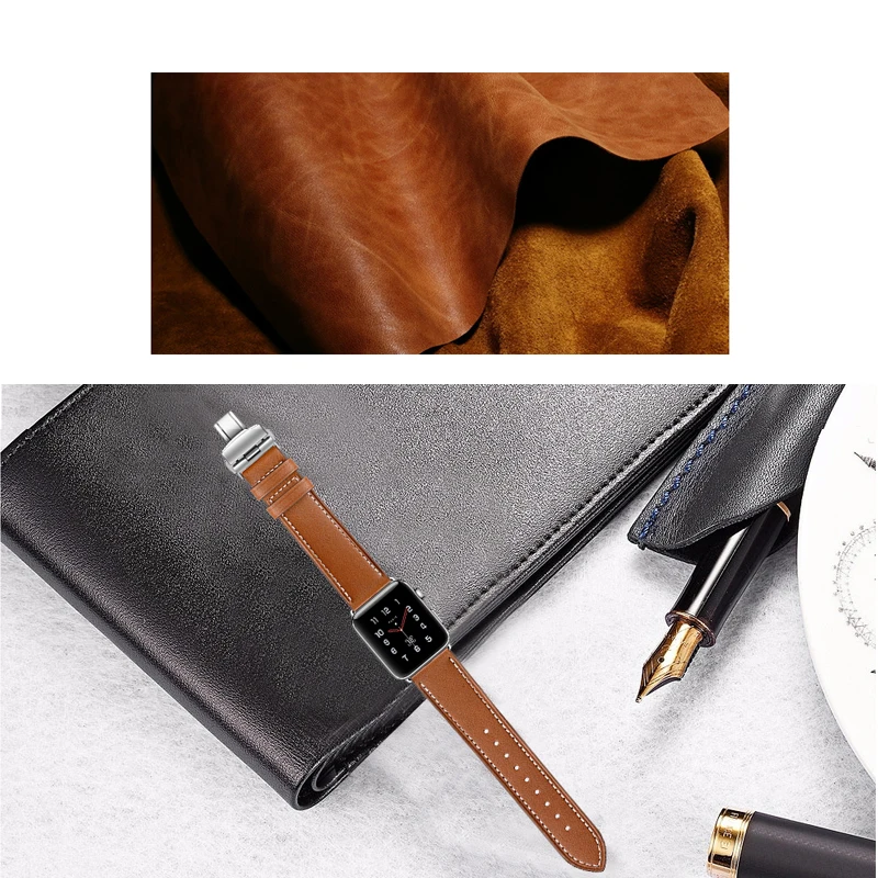 Ремешок кожаный с застежкой-бабочкой для apple watch 65SE7432 iwatch 44 мм, 40 мм, 42 мм, 38 мм, 45 мм, 41 мм