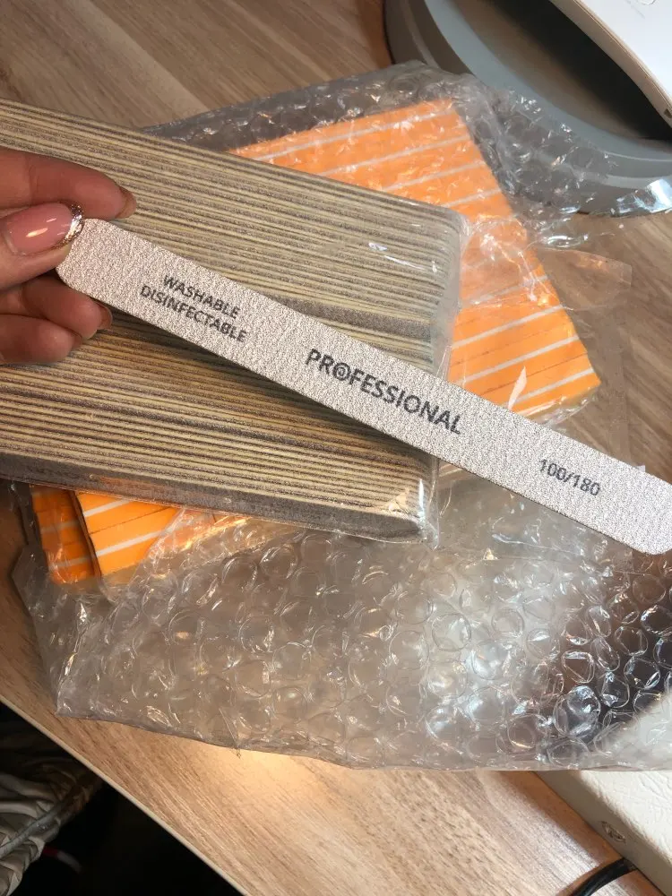 Хорошие пилочки для своей цены, брала 100/180 и 180/240. 100 гритт жестковаты даже для искусственного материала, а вот 180 и 240 отлично подойдут как одноразовые. Пришли быстро, даже не ожидала. Колличество совпадает заказанному и в подарок продавец положили мини-пилку.