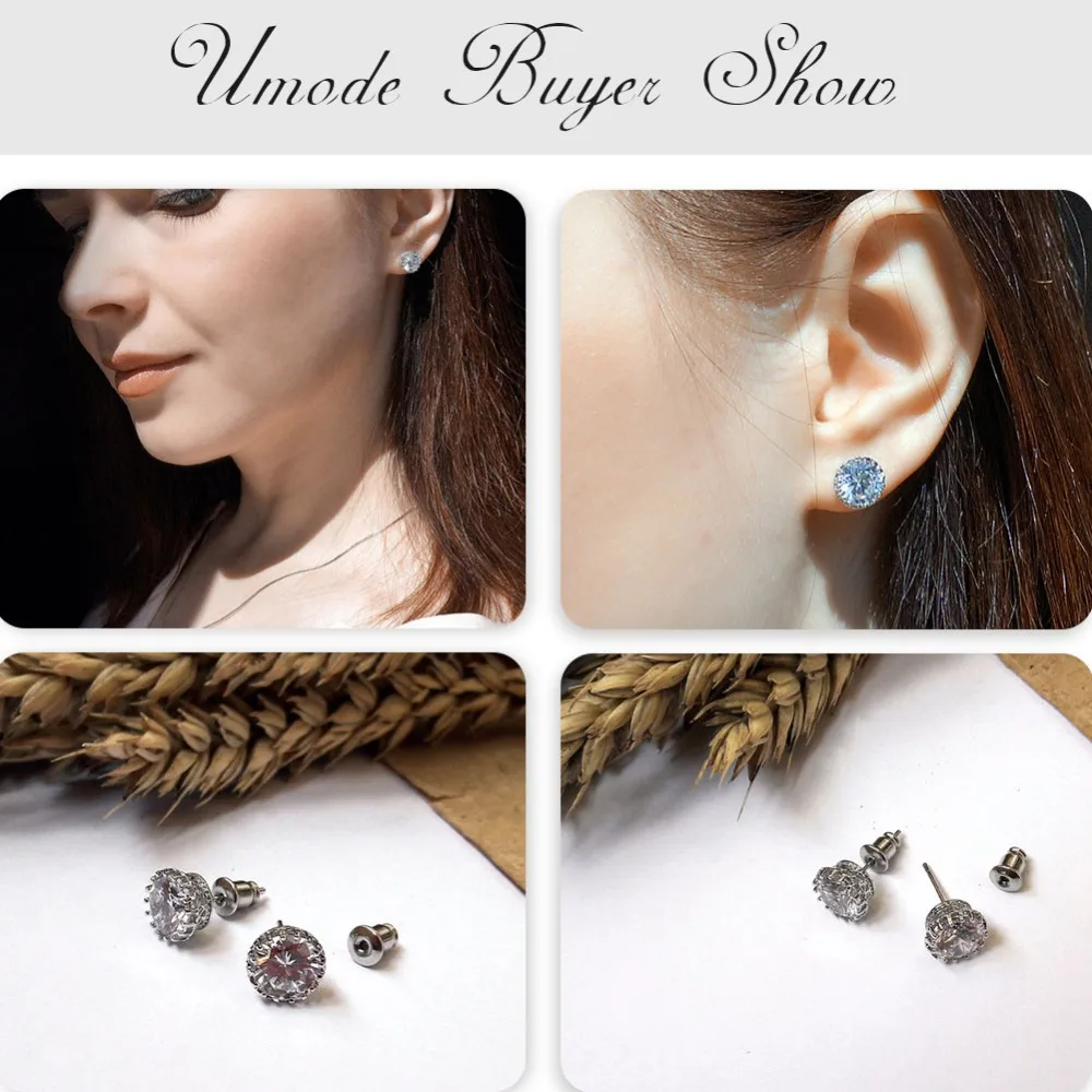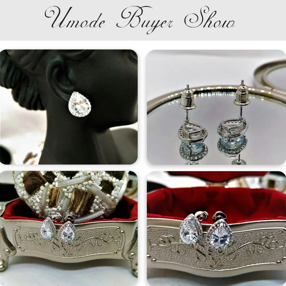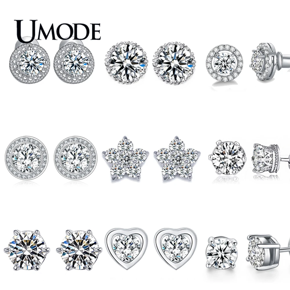 Женские серьги-гвоздики UMODE, корейские серьги-гвоздики с прозрачным кубическим цирконием класса ААА +, ювелирные изделия в форме круглой звезды, цветка, сердца, капли воды, UE0012X