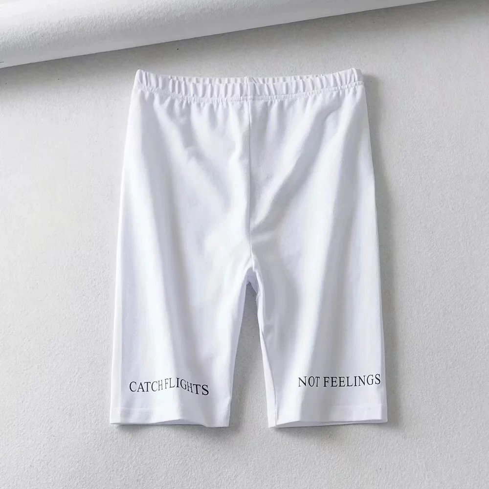 Женские байкерские шорты, черные эластичные шорты с высокой талией, облегающие шорты для фитнеса в Корейском стиле с буквенным принтом, 2019