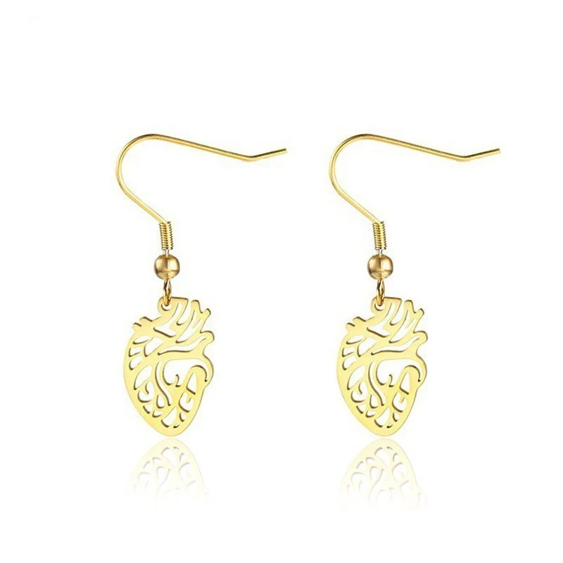 Ювелирные изделия RIR с лазерной огранкой, анатомический Медицинский символ, органическое сердце человеческих органов, серьги-подвески, биологические органайзеры, подарок