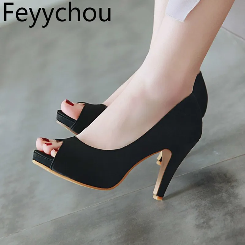 Туфли-лодочки женские на очень высоком каблуке, весна-осень, открытый носок, толстый каблук, без застежки, платформа 2019, новые пикантные модные, розовые, черные, большие Size34-44 icon star icon star icon star icon star icon star