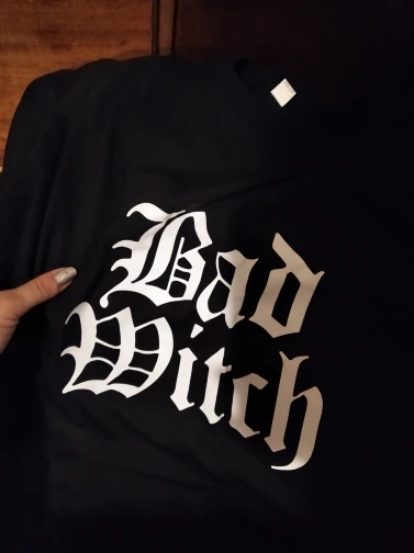 Заказала две футболки: " Bad witch" и "Good witch". Качество - хлопок. Ношу S, заказала M (в плечах подошли идеально, только в районе груди и талии сидят свободно, как я и хотела. По длине - паховую зону немного прикрывает,в принципе, можно будет носить как со штанишками, так и с лосинами)