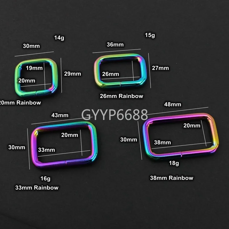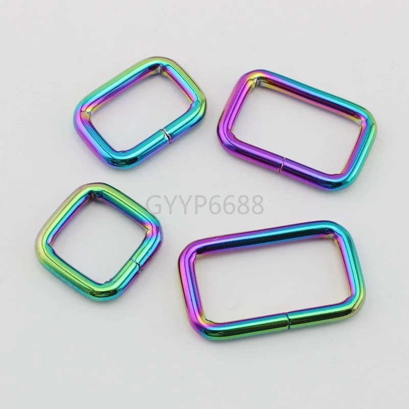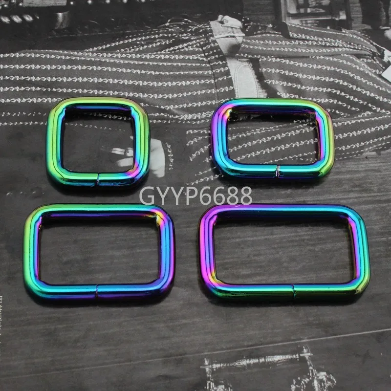 10-30-100шт 6 размер 13-16-20-26-33-38мм Радужная круглая кромка сплав без сварной пряжки мешка, прямоугольное кольцо fashoion трендовые металлы