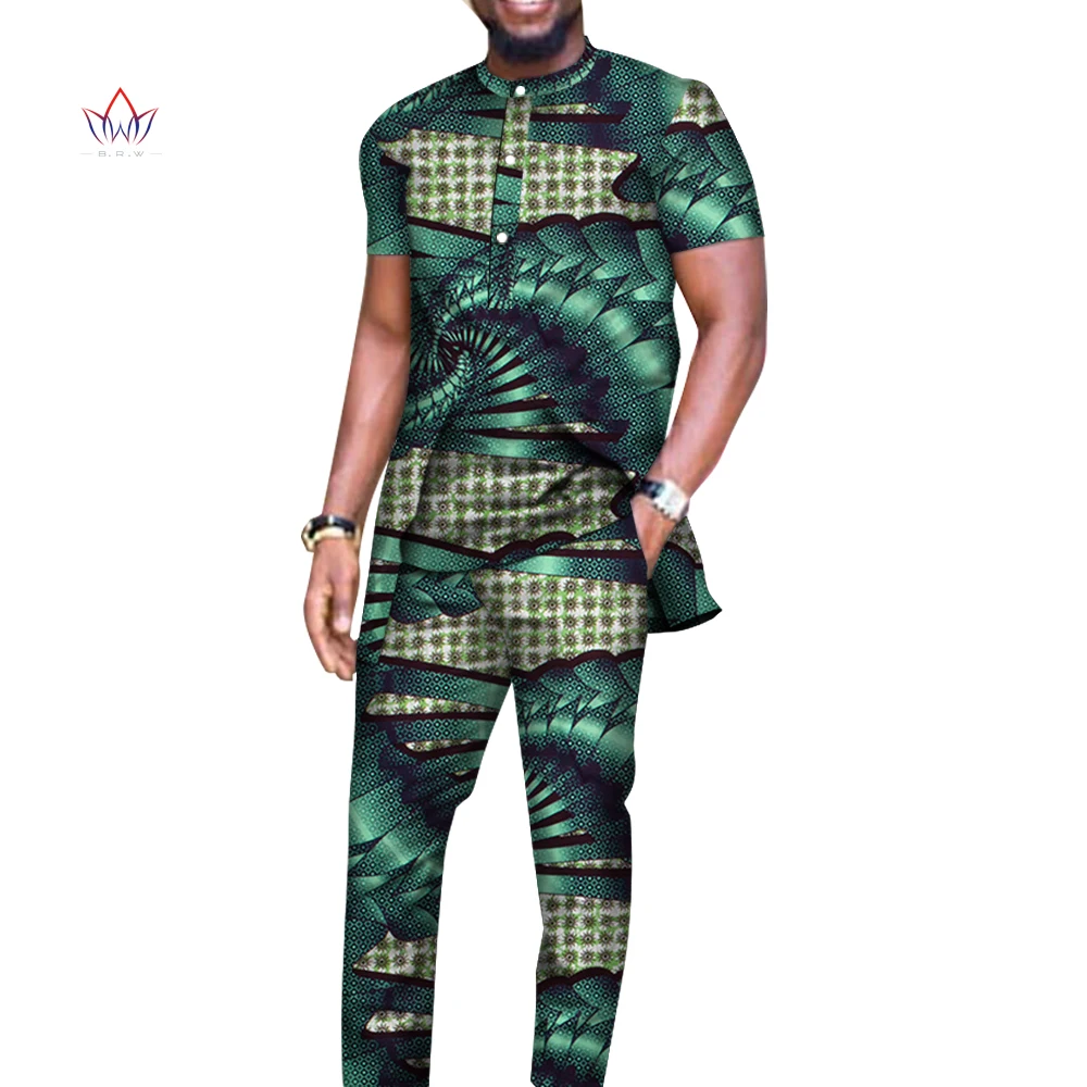 Bazin богатые мужские комплекты из 2 предметов, африканский дизайн одежды, африканская одежда, повседневные мужские комплекты с длинным топом и брюками WYN514