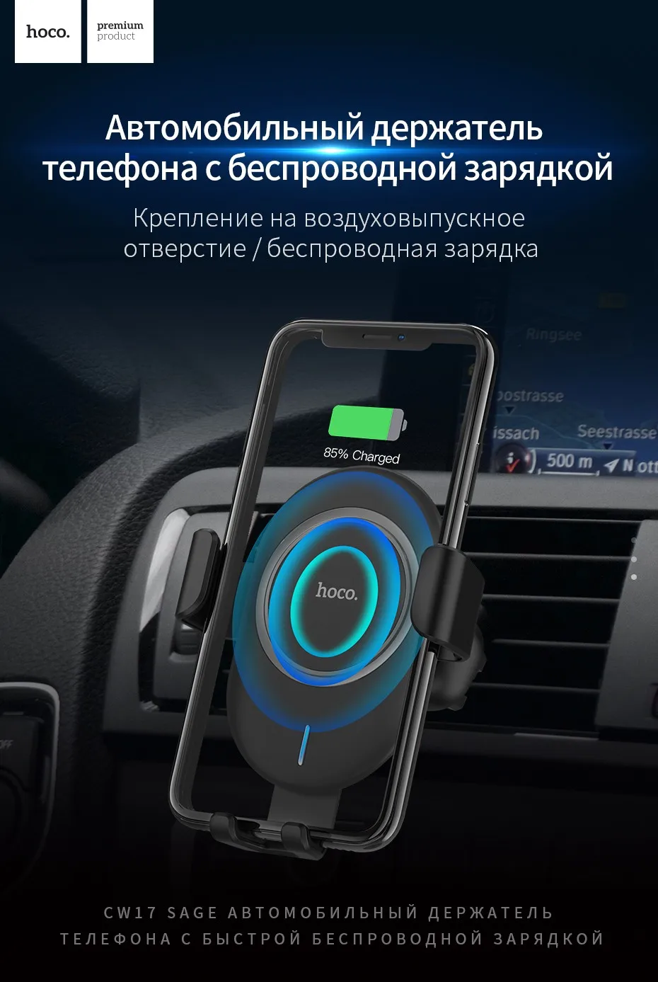 НОСО 10 W автомобиля Qi БеспроводнойЗарядноеустройствобыстройзарядкидля iPhone 8 X XS Max автомобильныйдержательтелефона Air Vent подставкадля samsung s9 Xiaomi