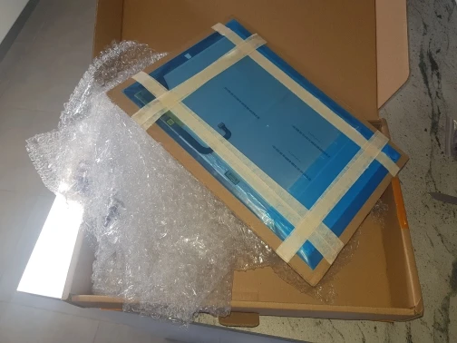 Экран очень хорошо упакован. Прибыл немного позже, чем ожидалось, но работает хорошо.