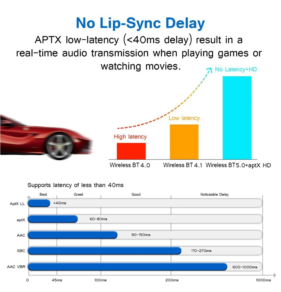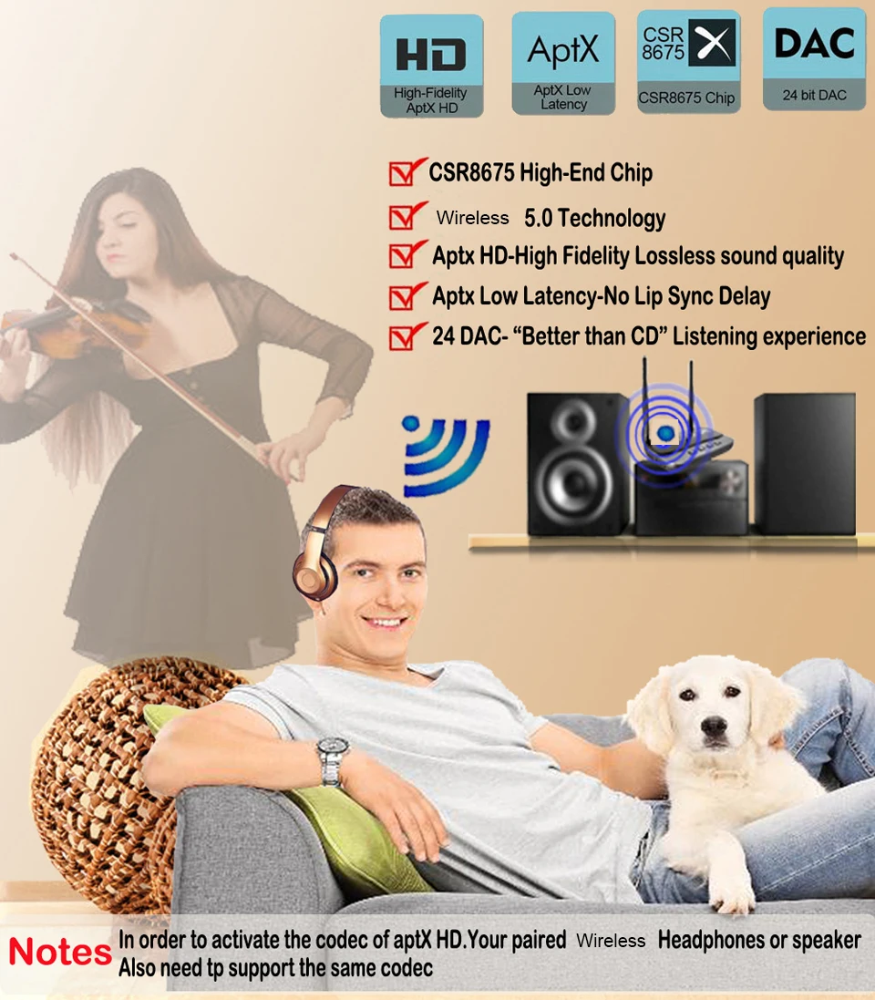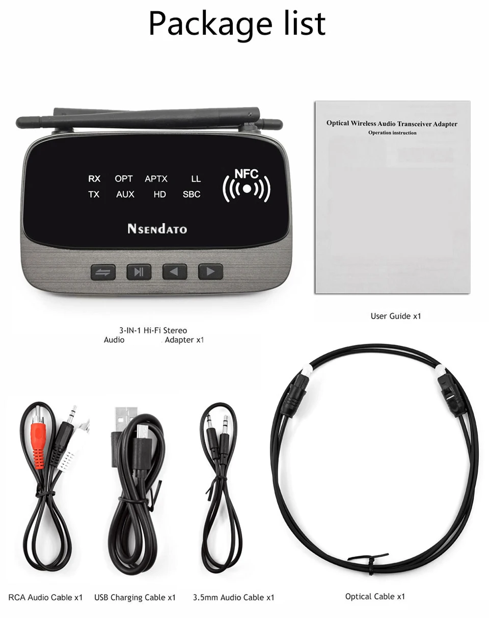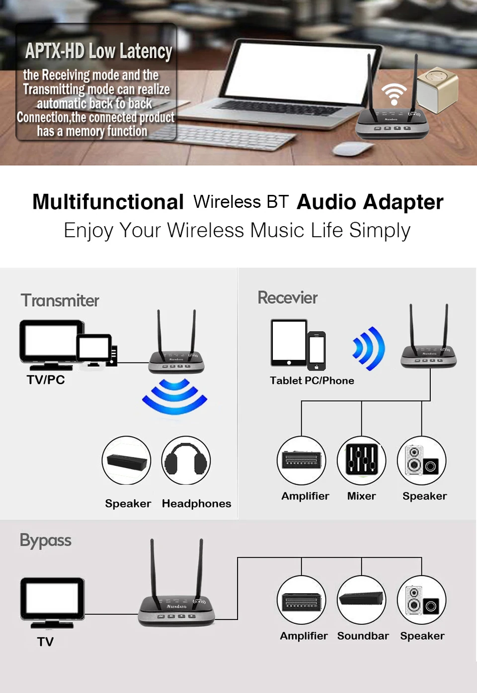 Беспроводной аудиопередатчик 3 в 1, 5,0 футов80 м, NFC, дальнего действия, aptX HD, с низкой задержкой