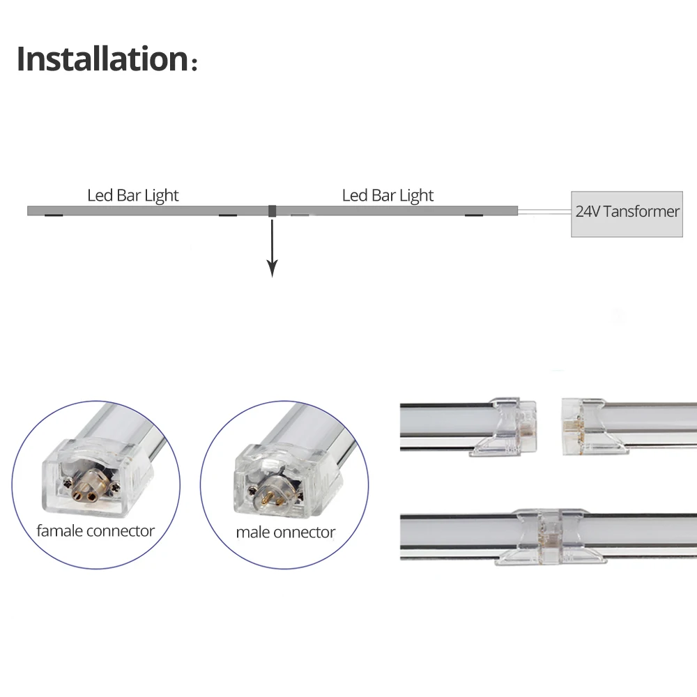 24 шт, 50 см, Светодиодная панель, сенсорный датчик, диммер, светодиодный шкаф, бесшовное подключение, 2835, светодиодная жесткая полоса, свет для кухни, 24В