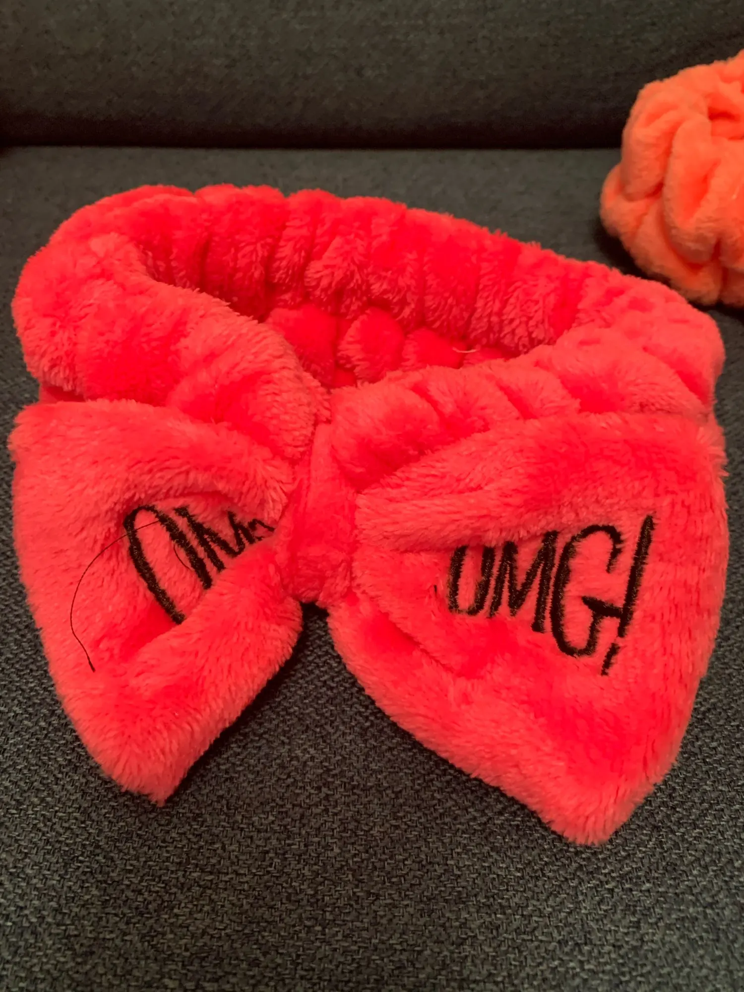 Повязка на голову женская из флиса, яркая, с бантом, с надписью OMG, W1001, модная повязка для волос