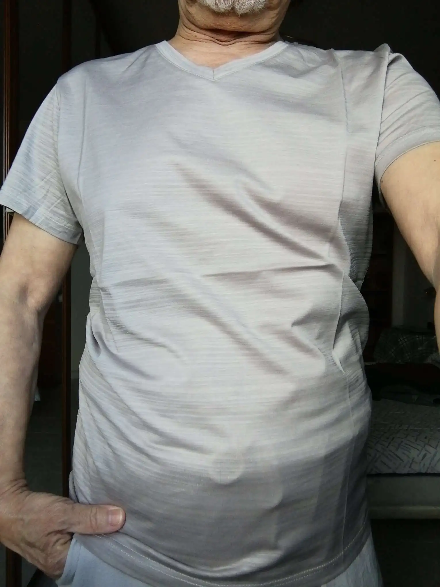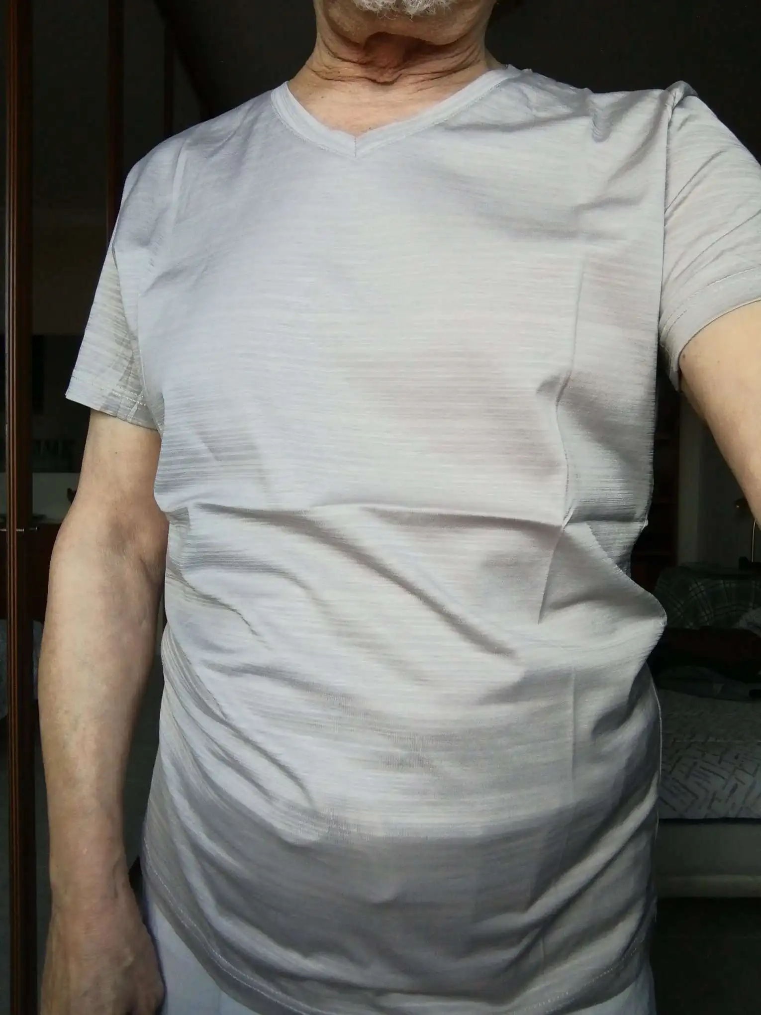 Футболка мужская с V-образным вырезом, приталенная тенниска из мерс...