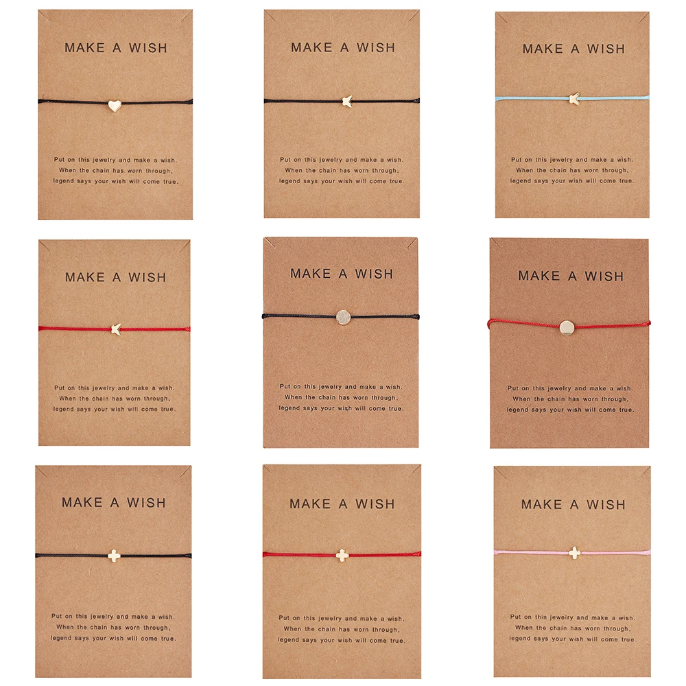 Браслет с шармами сделай желание, женский браслет с подвесками в форме сердца, с регулируемой звездой, крестом, бабочкой, красной нитью, дружба для детей и женщин, Подарочная бижутерия