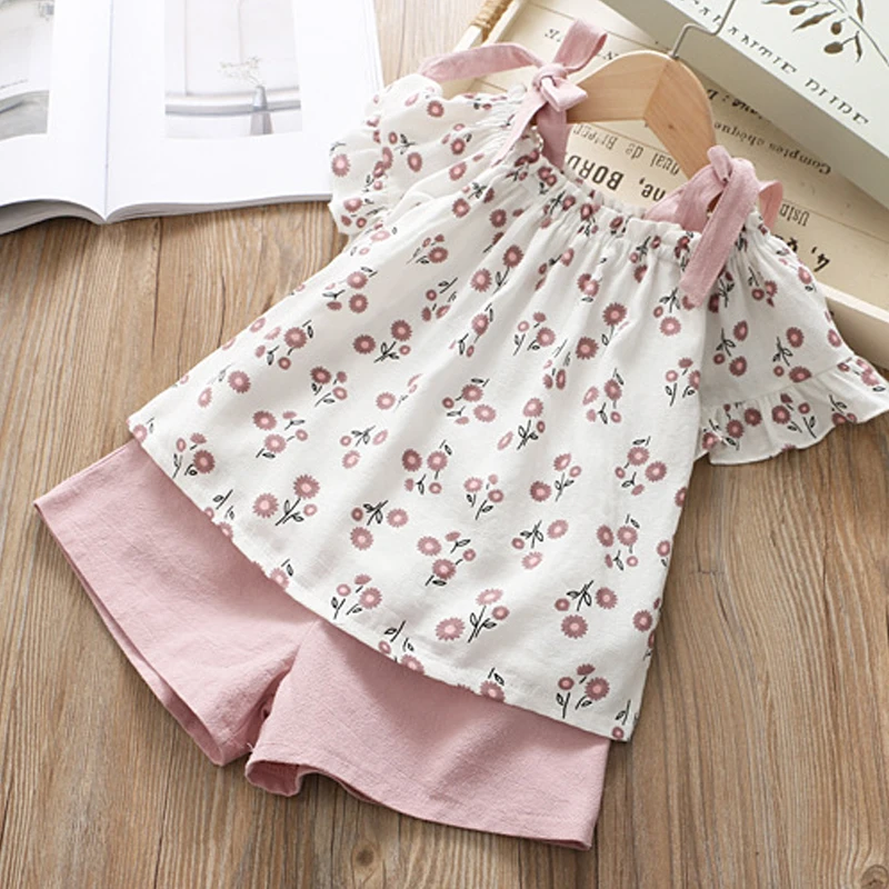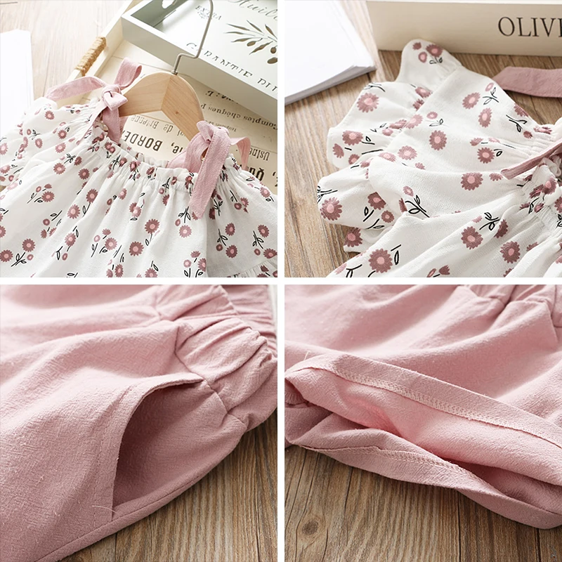 Bear Leaderплатье для девочек Новинка 2022 года, детская одежда платье на бретельках с открытыми плечами комплект детской одежды, топ с цветочным рисунком + платье, комплект