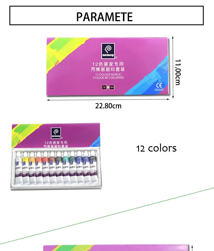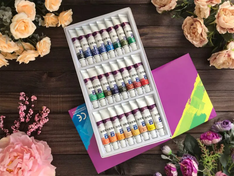 121824 цветов 12 мл набор тюбик акриловой краски для дизайна ногтей стеклянная краска для рисования ткани инструменты для рисования для детей Сделай Сам водостойкий
