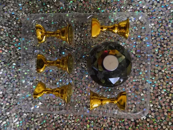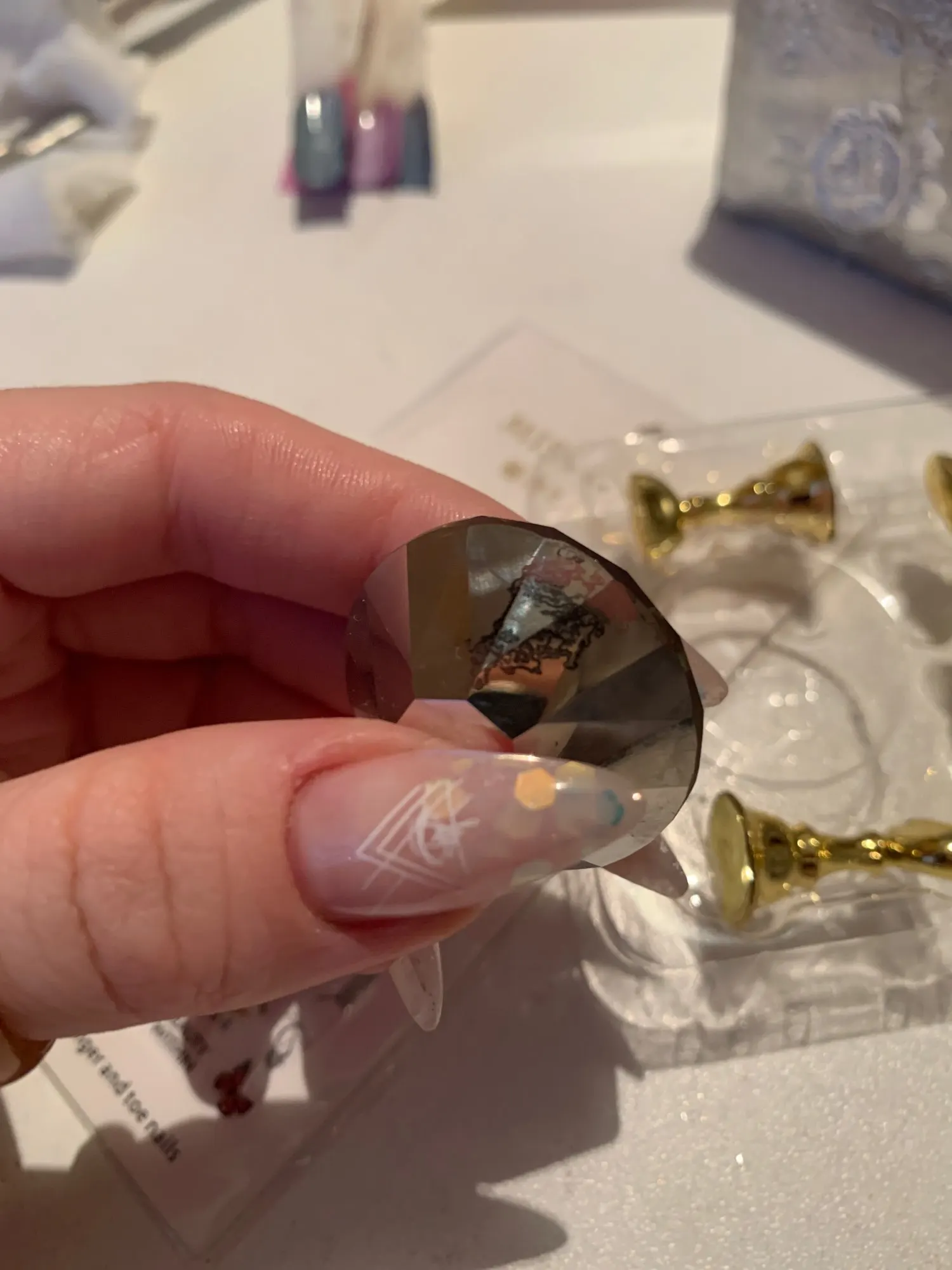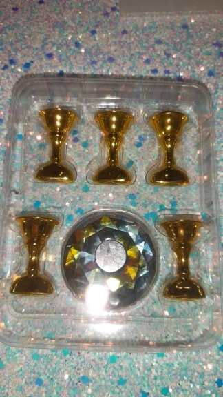 Розовый кристалл оказался пластмассой) а думала стекло) держатели типс тоже пластик) в целом хорошо, но стеклянные выигрышнее смотрятся