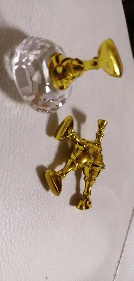 Всё пришло,но цвет ножек более жёлтый,чем на фото,сам кристал не большой. С продавцом не общалась.