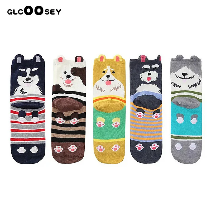 Высокое качество 5 парупак. с изображением забавных милых носки для женщин носки для девочек хлопок 3D мультфильм Хаски пони Лев лиса Пингвин щенок с рисунком кошки медведя милая собака коготь