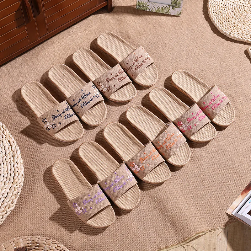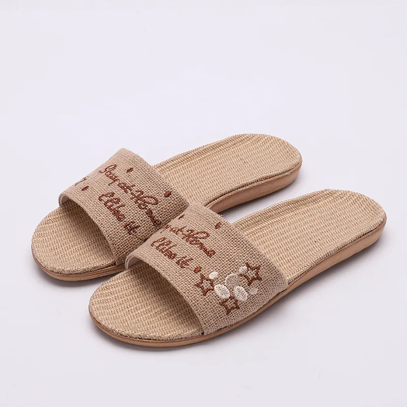 Шлепанцы Мужские дышащие, Нескользящие, повседневные сандалии из конопли, сланцы для дома, однотонные, лето 2019