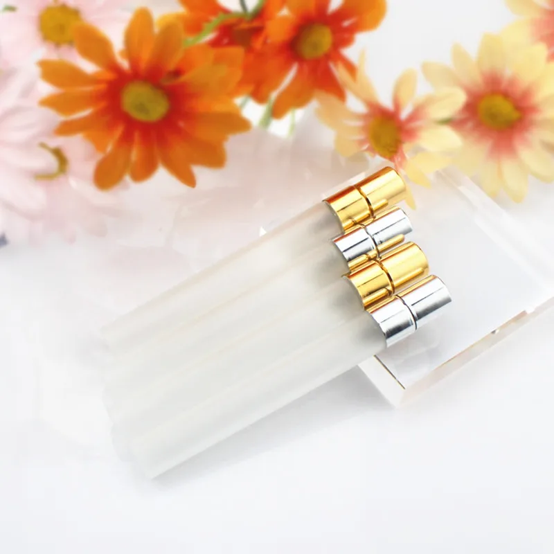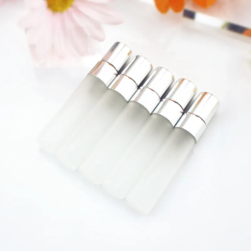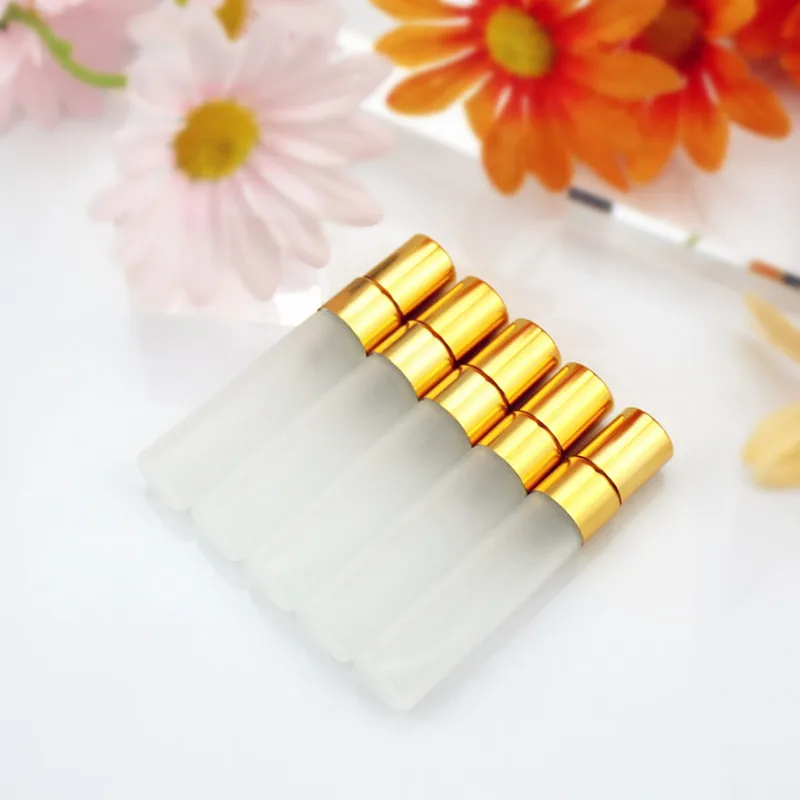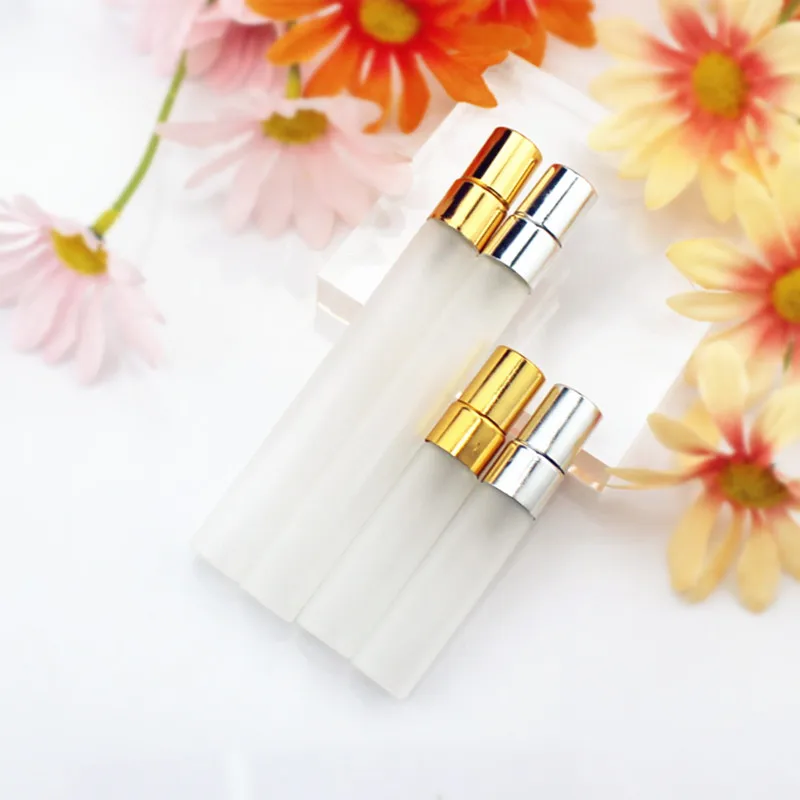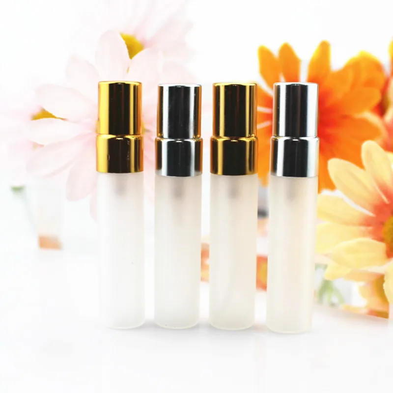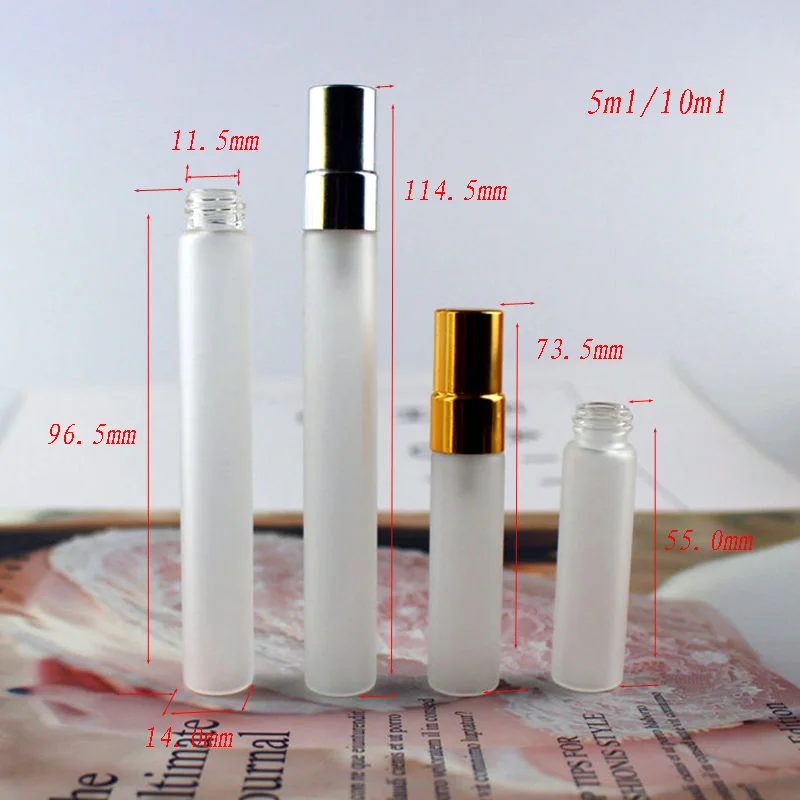 50 шт.лот 5 мл 10 мл матовый стеклянный флакон с распылителем, заправка парфюмерного атомайзера, портативные мини-флаконы для образцов с золотой, серебряной, черной крышкой