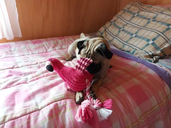 Розовое одеяло с фламинго, с мешочком внутри, не предназначенным для рекламы, но моя собака любит его новое одеяло