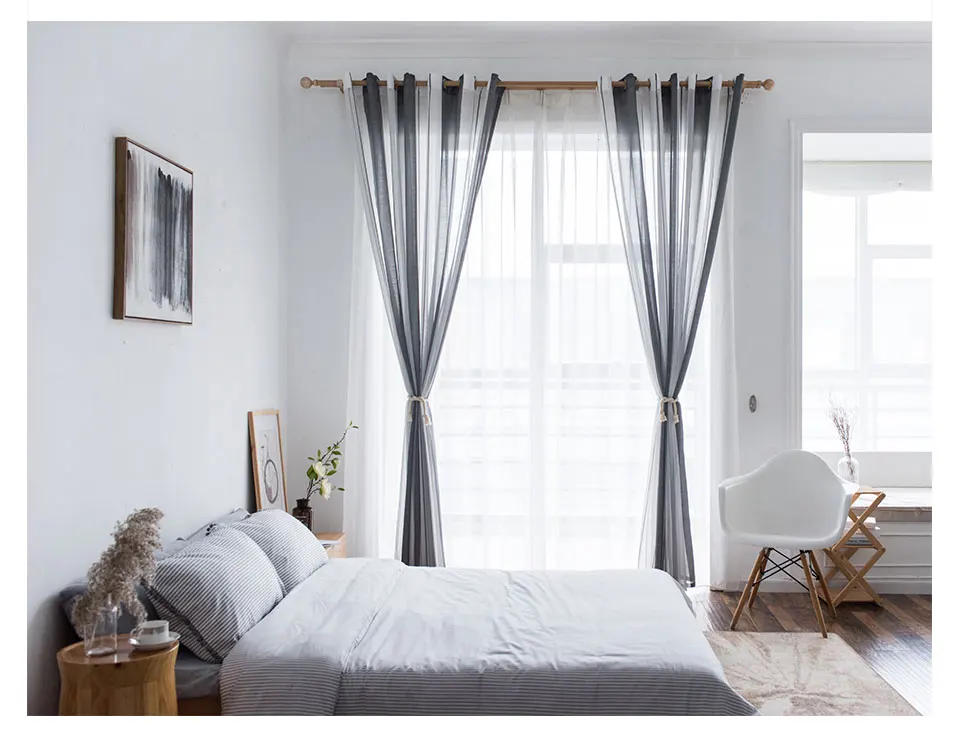 Полосатые градиентные прозрачные шторы для гостиной, спальни, серые тюлевые шторы для комнаты, кухни, декоративные драпировки для окон