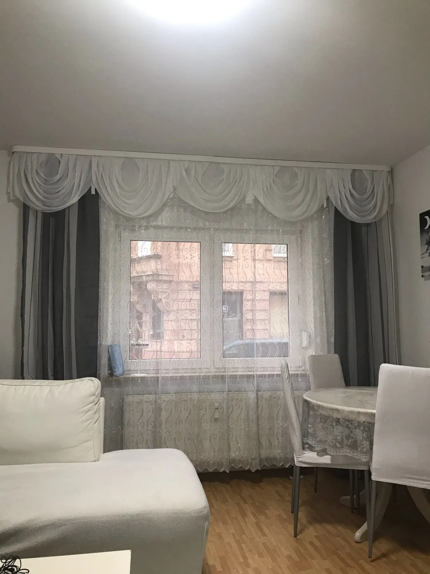 Отличные сшитые шторы. Один комплект выполнили согласно необходимым замерам. Фото не очень наглядно (фотографировала свекровь). Доставка больше месяца, но заказ попал на празднование Нового года в феврале.