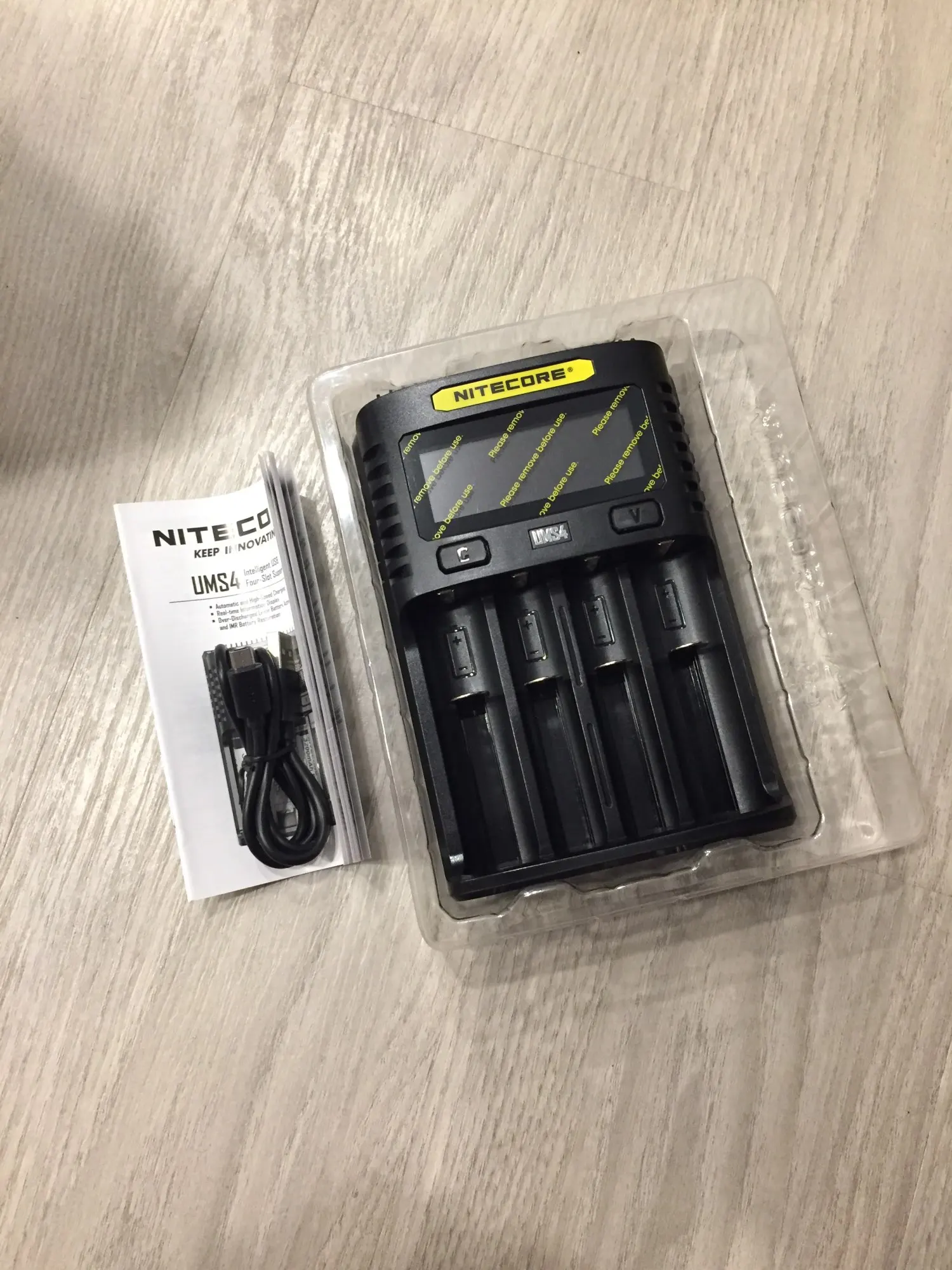 NITECORE UM4 UMS4 автоматический универсальный 3A 2A быстрое зарядное устройство интеллектуальное зарядное устройство с двумя слотами USB ЖК-дисплей Li-Ion IMR батарея 18650 21700