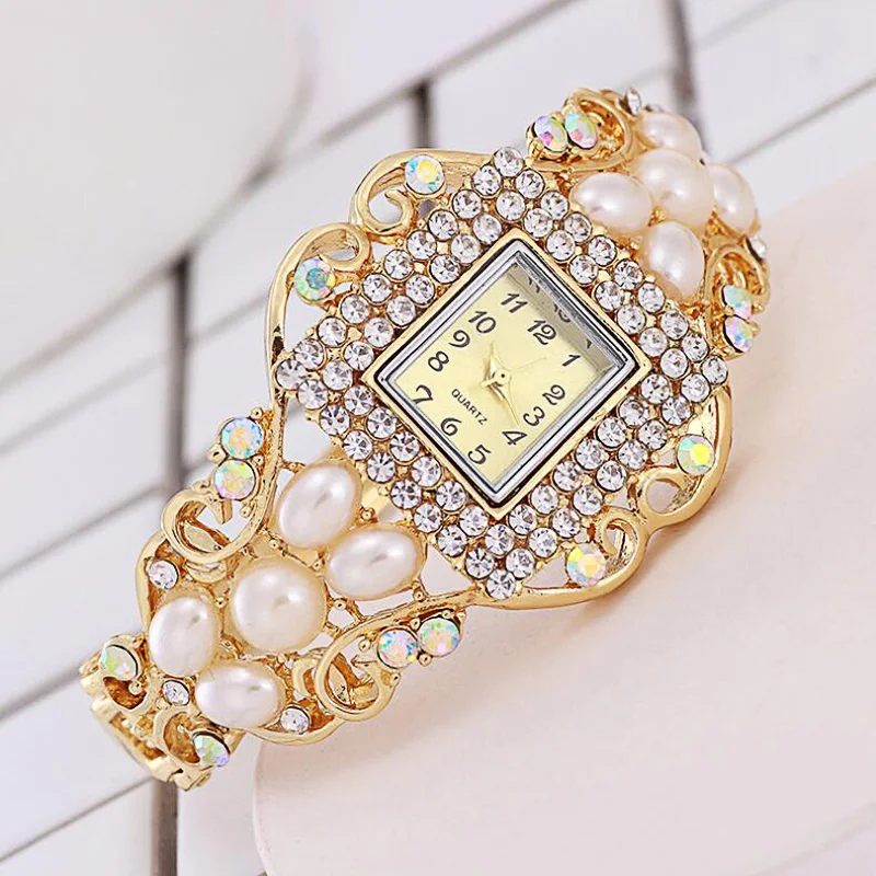 Жемчужный Модный женский браслет с бриллиантами жемчужный браслет для стола жемчуг K золото браслет часы с жемчугом женские наручные часы