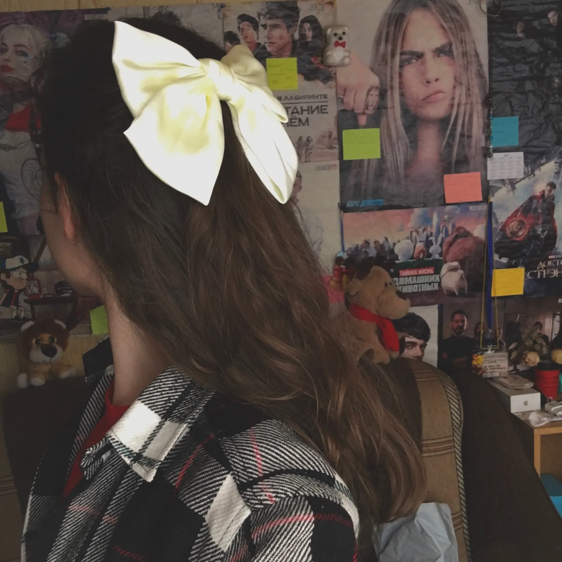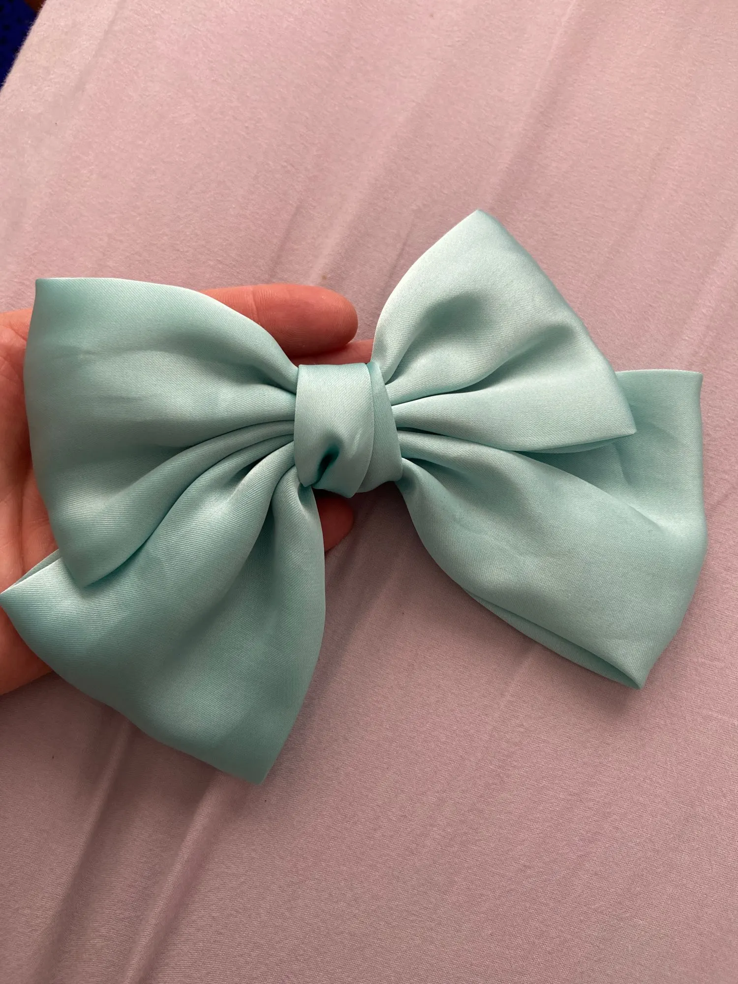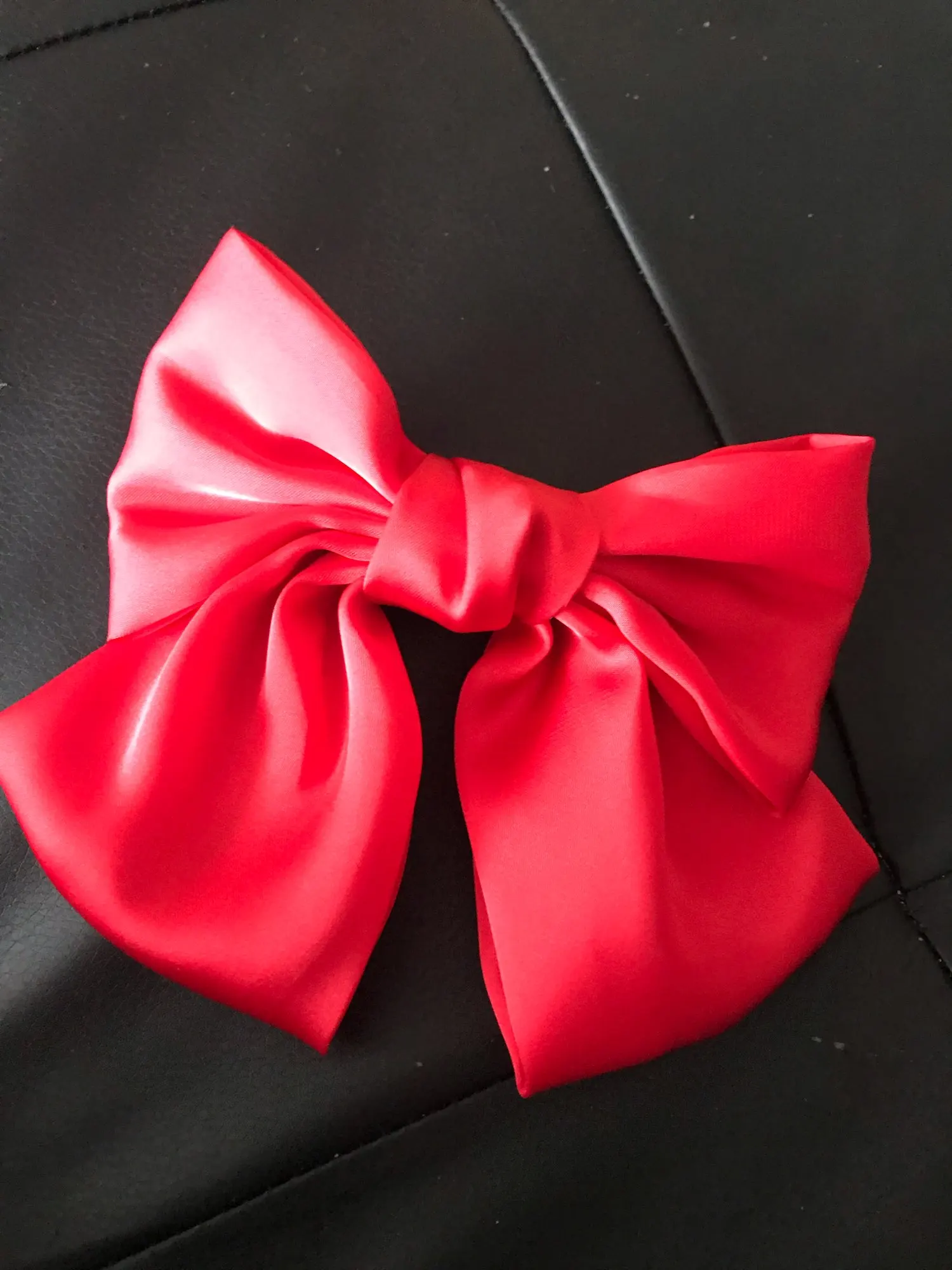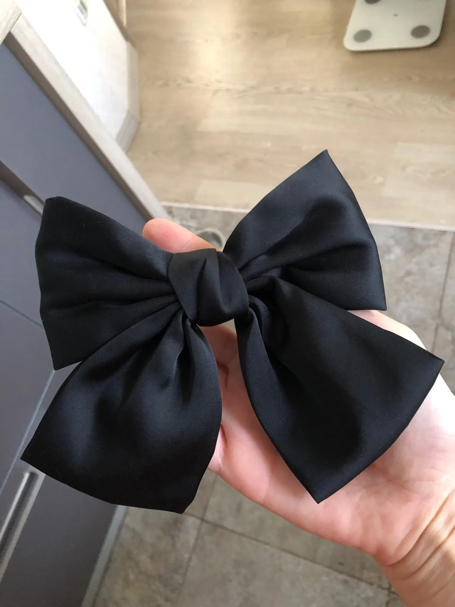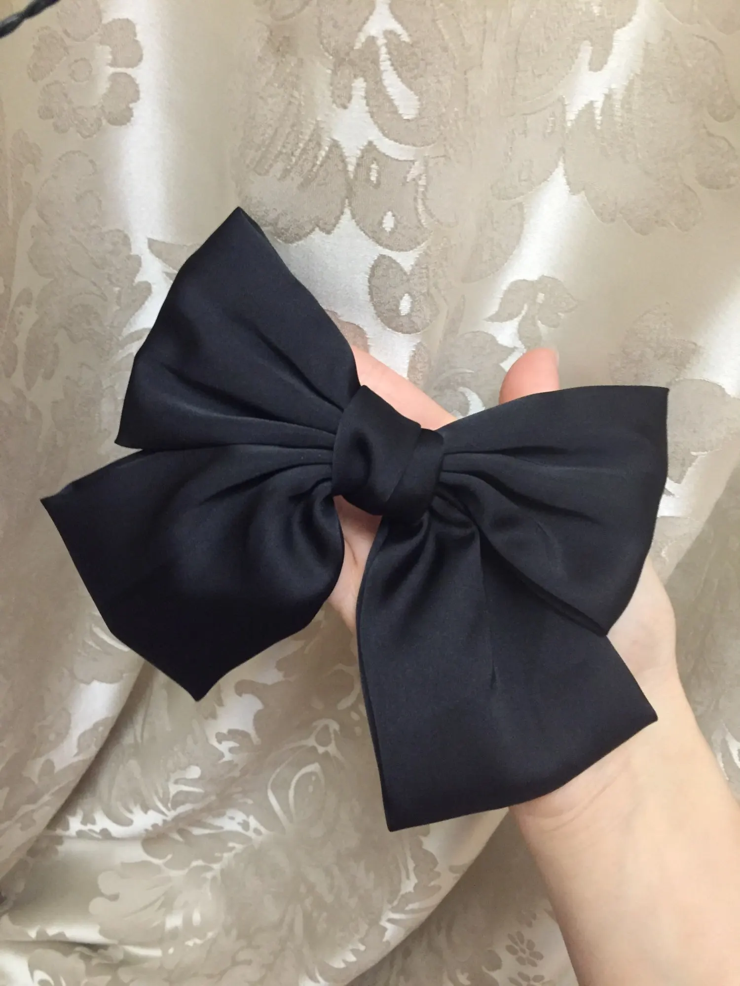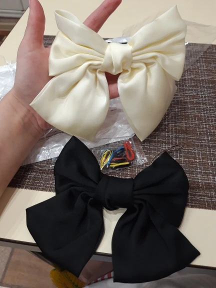 Отличный бант, до этого заказала у другого продавца, на фото такой же, а пришёл весь кривой. Этот бант красивый, аккуратный, не большой. Заколка работает, все ок. Доставка в Москву 3,5 недели, посылку объединили в другими продавцами, по новой их системе))