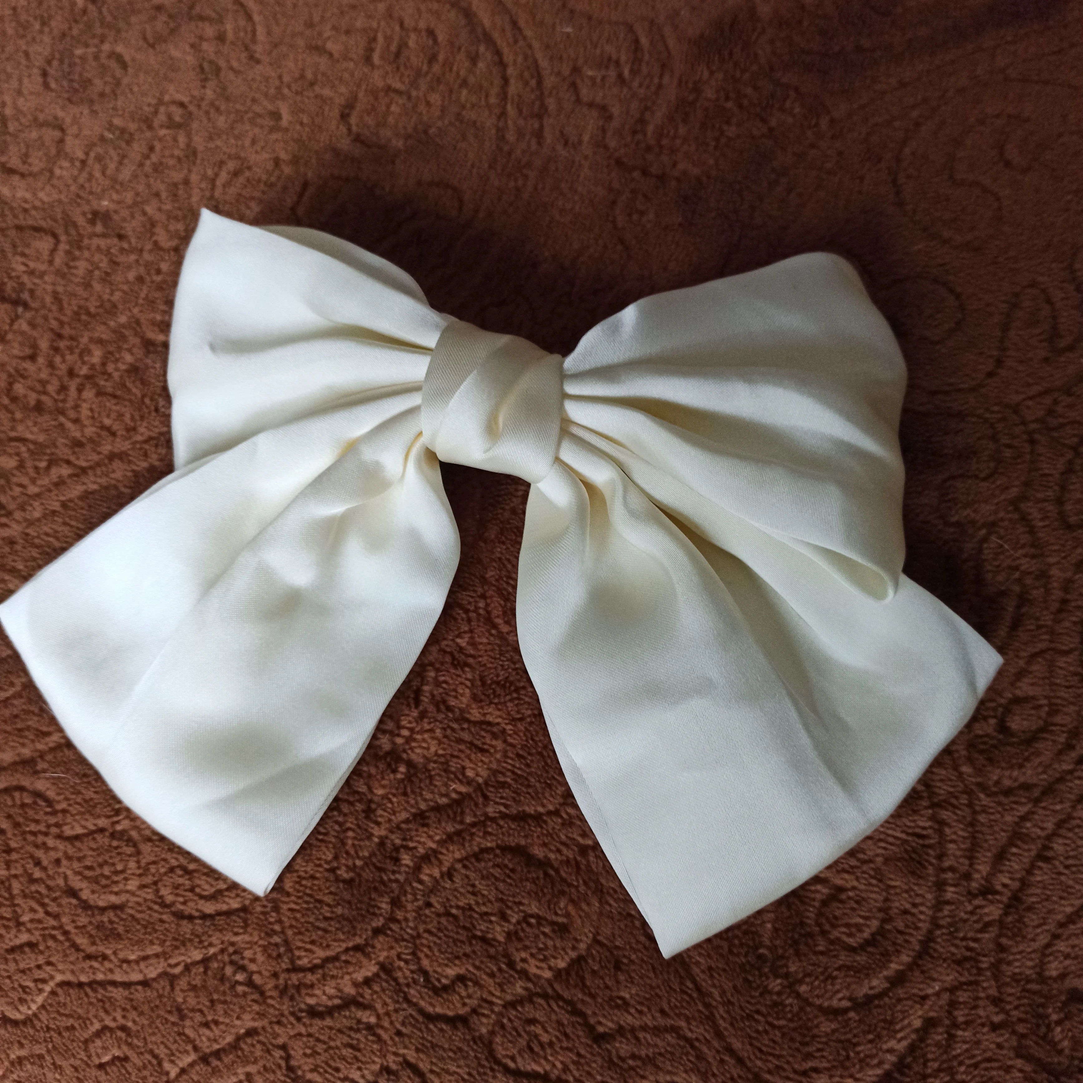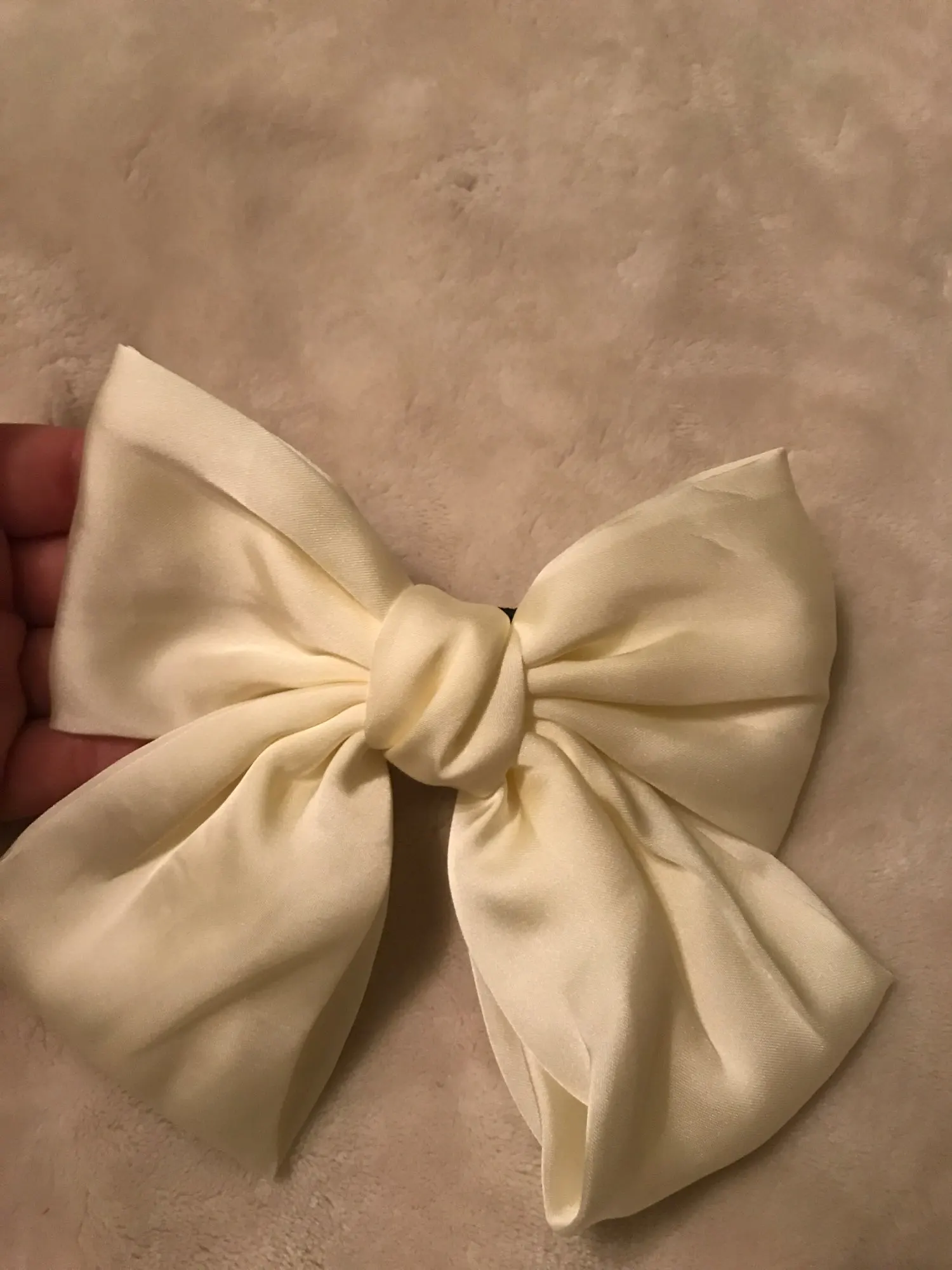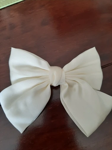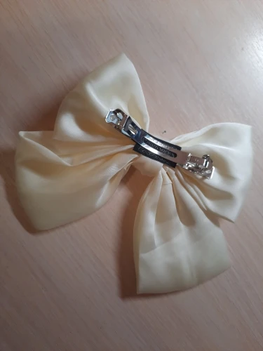 Бант красивый, цвет кремовый, размер самый оптимальный, ни большой, ни маленький. Буду носить с удовольствием. Спасибо.