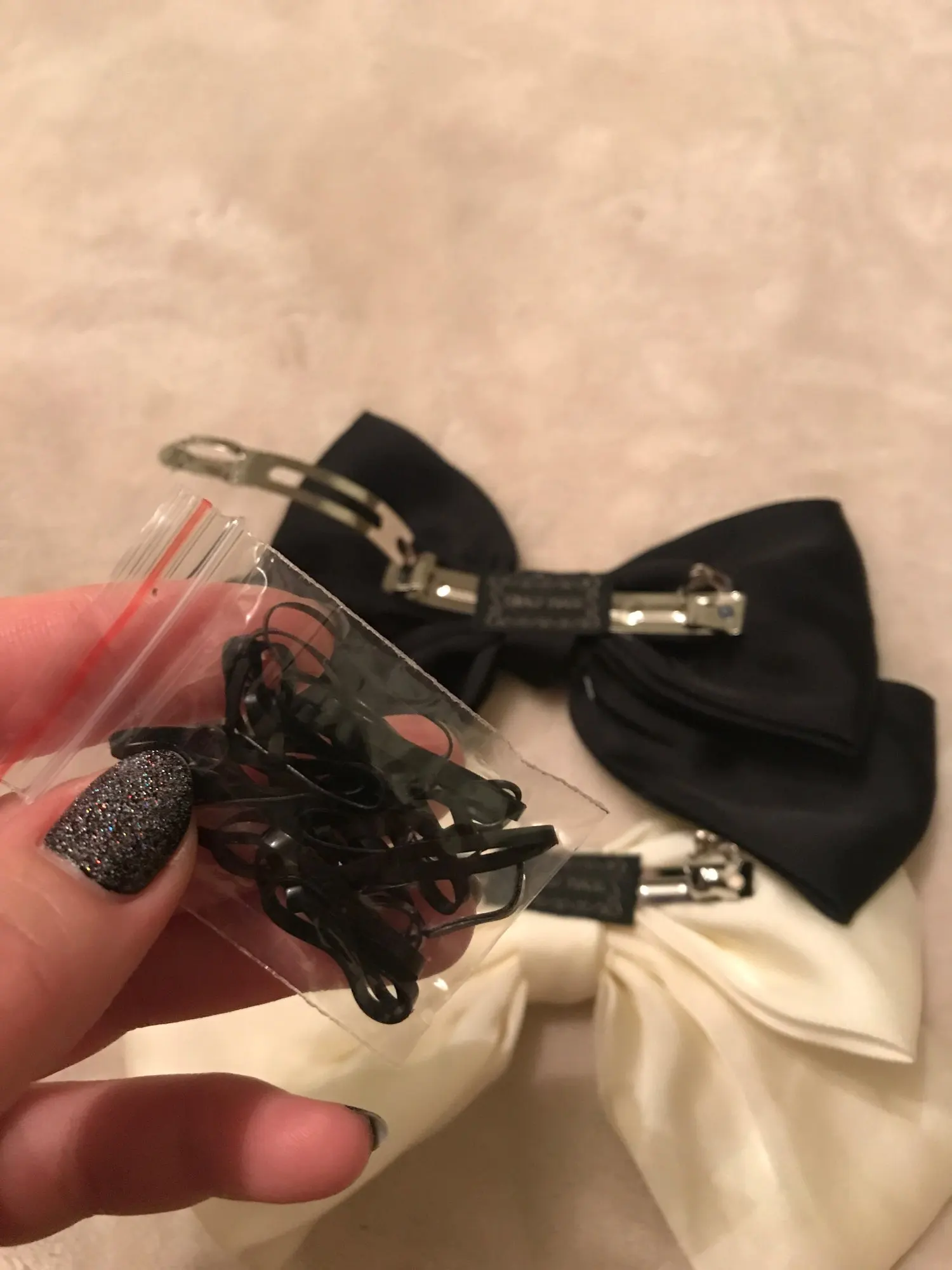 Бантики качественные и очень красивые. Сделаны аккуратно. Застёжка крепкая, но очень большой пучёк волос не возьмёт. Заказ отправил продавец быстро. Доставка заняла меньше 2 недель в Нижегородскую область. В подарок положили резиночки. Продавца рекомендую =)