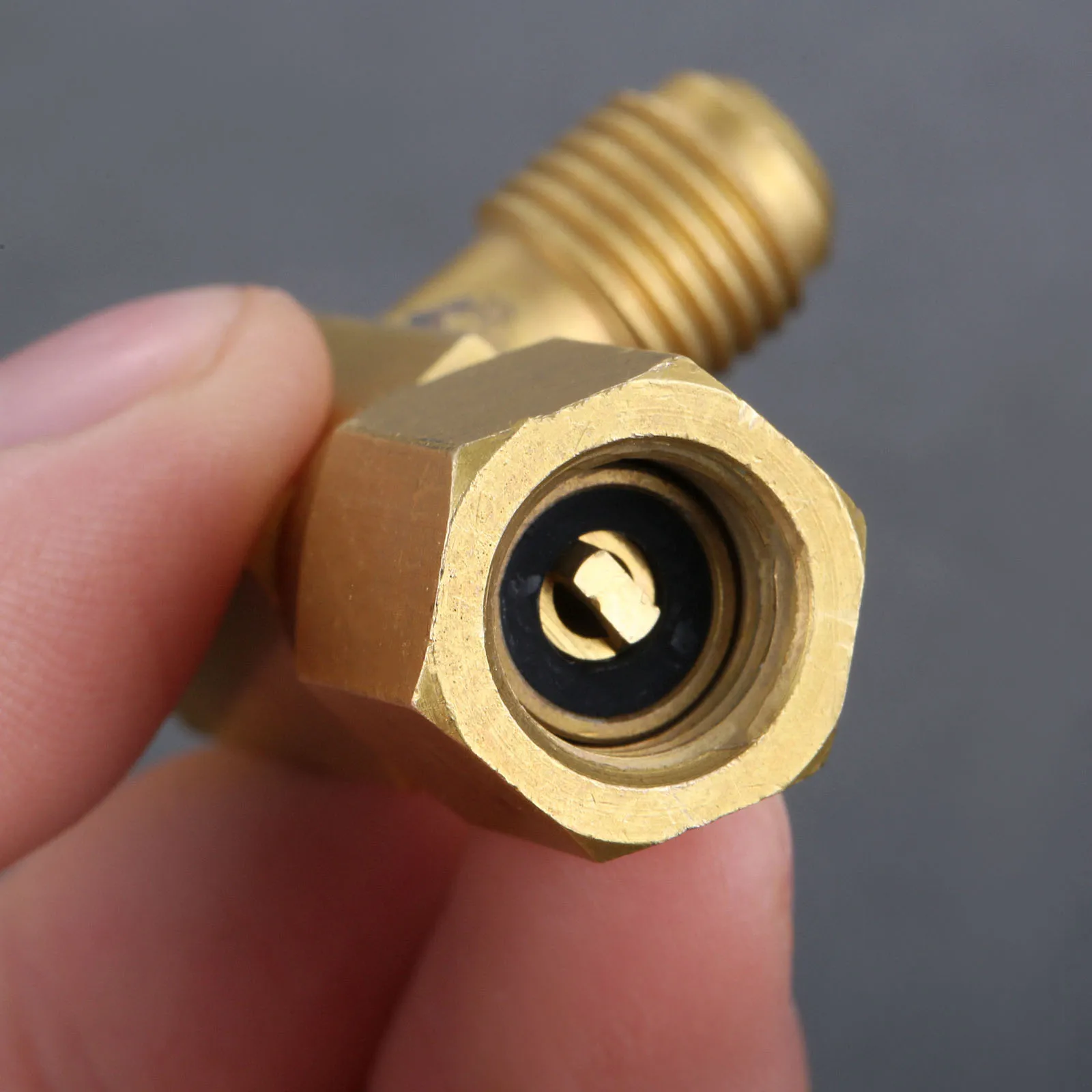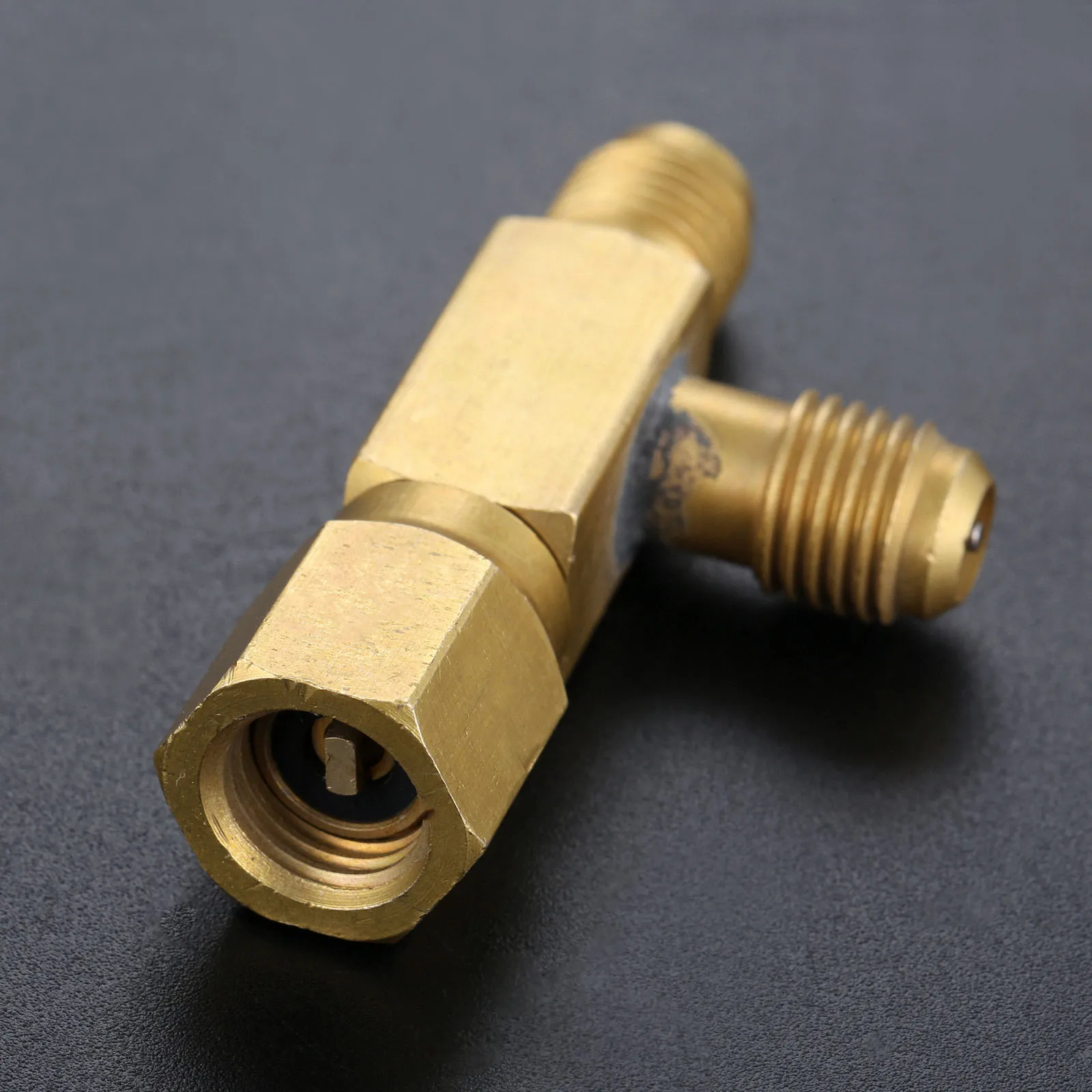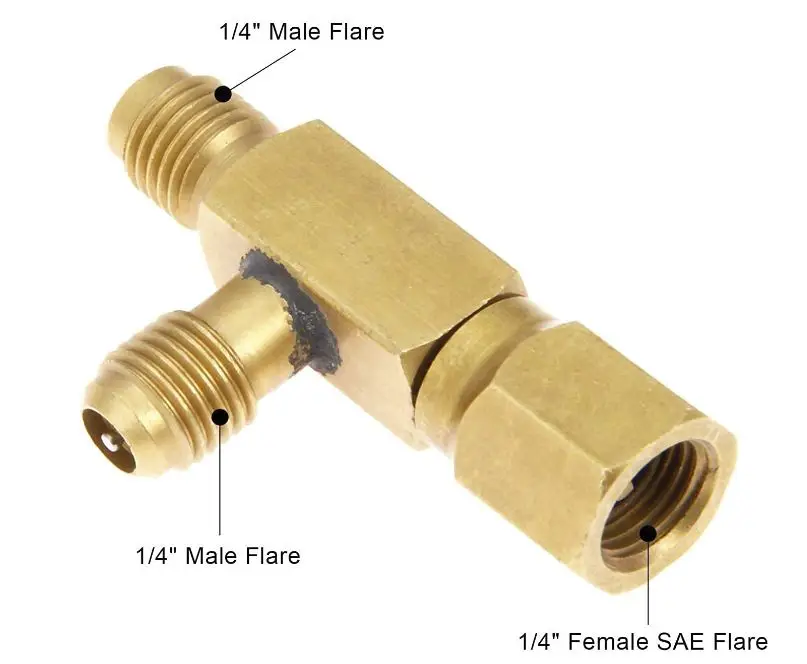 Один конец, Женский 1/4 "SAE flare FFL (общий размер многих сервисных инструментов, таких как коллекторный соединитель шланга и порты обслуживания холодильной системы), с клапанным сердечником встроенный.