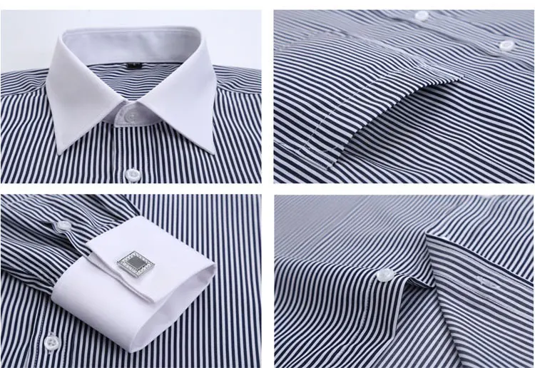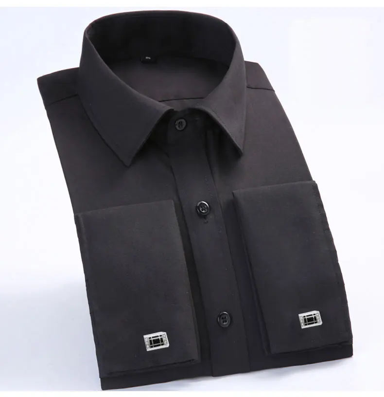 Мужская рубашка с длинными рукавами, Классическая деловая рубашка, с французскими манжетами, размера плюс