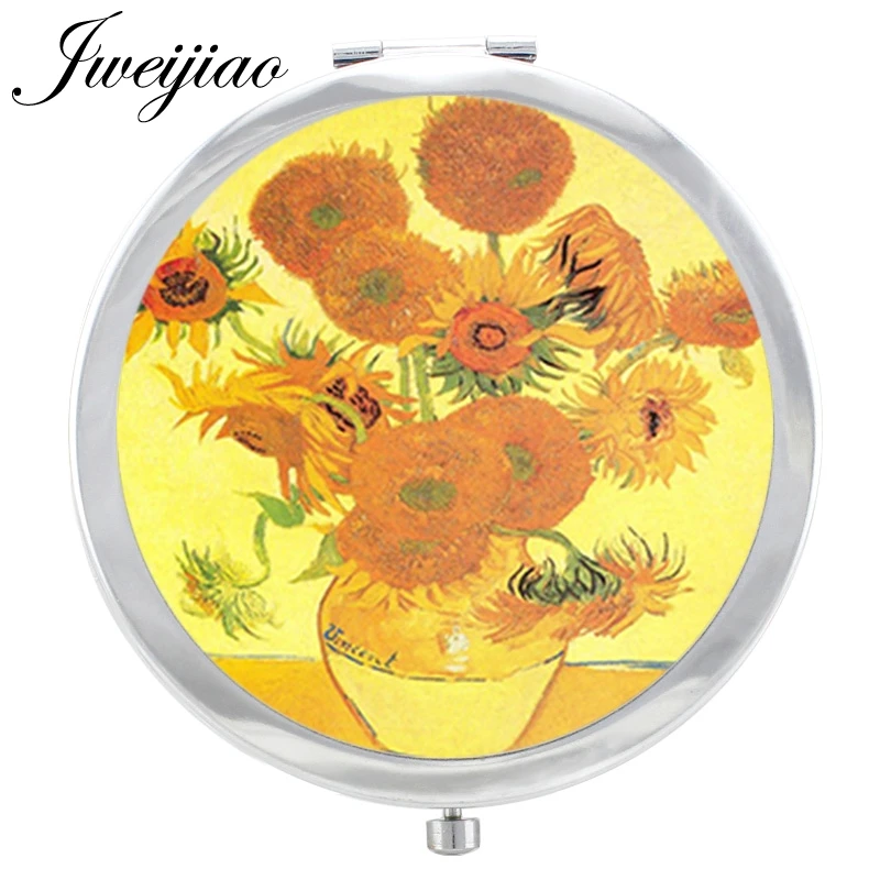 JWEIJIAO подсолнухи ван Гог картины стекло кабошон зеркало для макияжа увеличительное круглое компактное круглое карманное зеркало espejo